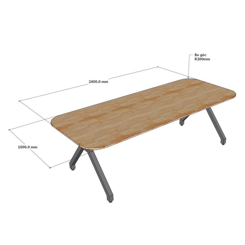 Bàn họp ARVO 240x100cm gỗ cao su chân lắp ráp BH68015