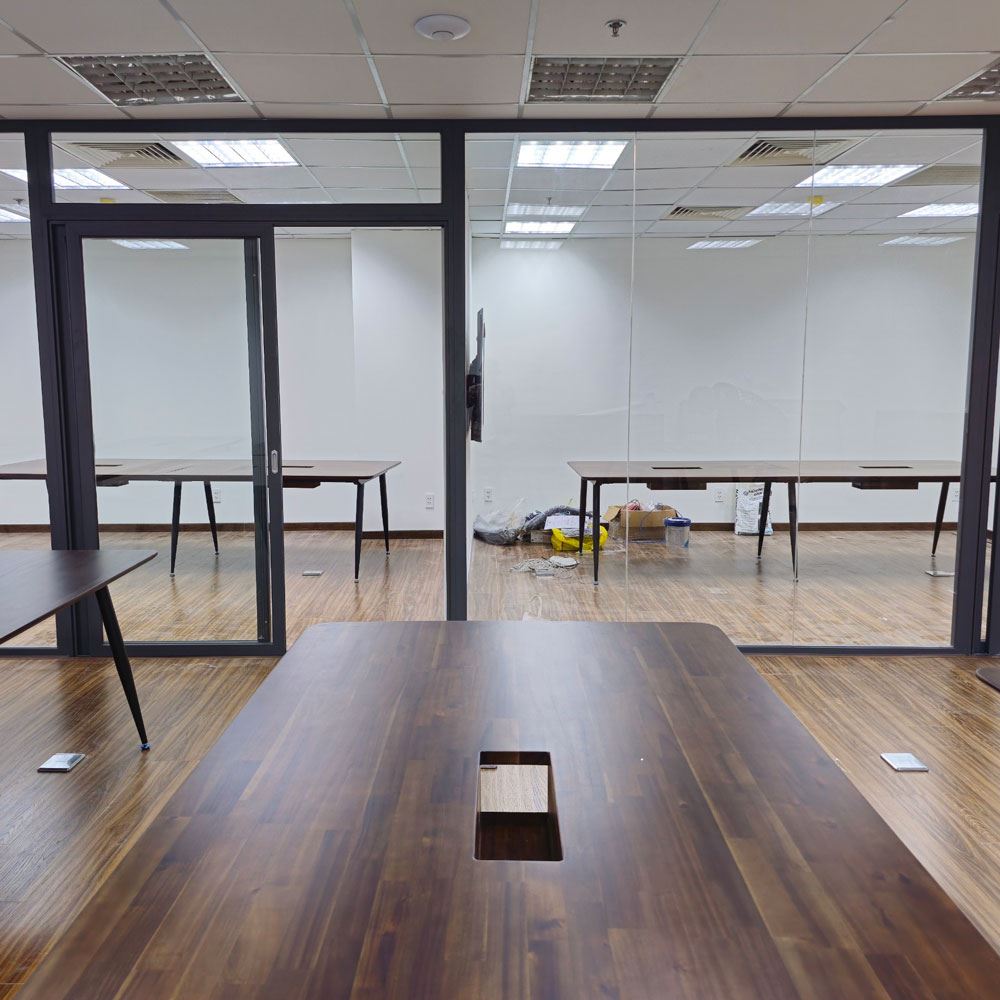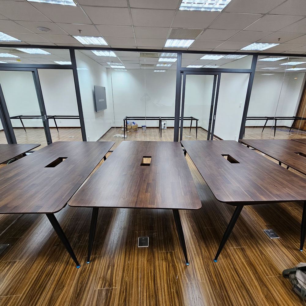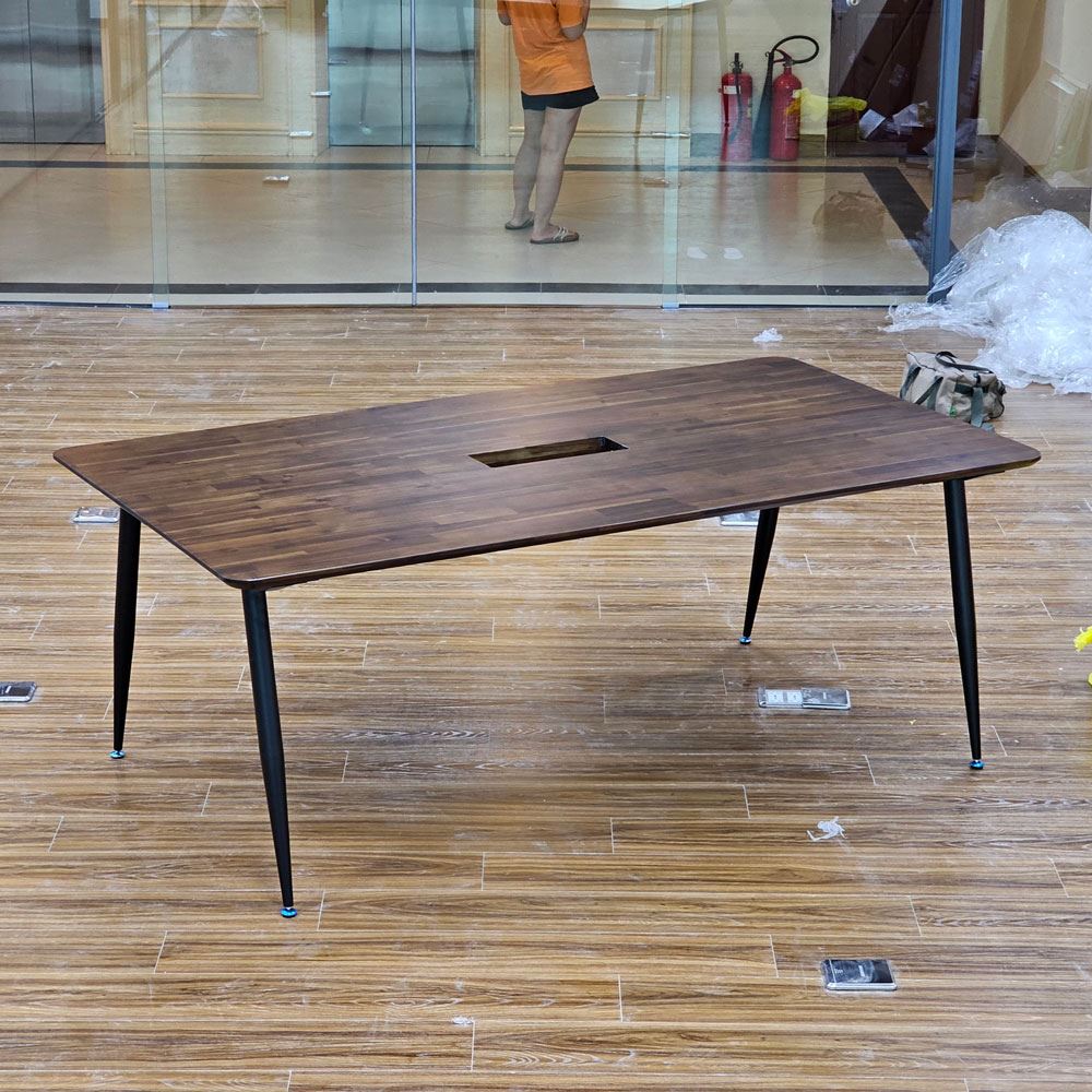 Bàn họp gỗ Tràm chân CONE HBCO055 là mẫu bàn họp kết hợp bàn làm việc được HomeOffice thiết kế và sản xuất cho văn phòng công ty CYBER Logistic Việt Nam, và được chúng tôi đưa lên thành bản thương mại. Với hệ 3 chân vuốt côn lắp ráp rất chắc chắn, kết hợp với mặt bàn gỗ Tràm dày 25mm được sơn PU màu gỗ Óc Chó rất sang trọng, các cạnh đều được bo mềm mại. Hãy tới HomeOffice và mọi yêu cầu của bạn sẽ được thực hiện.