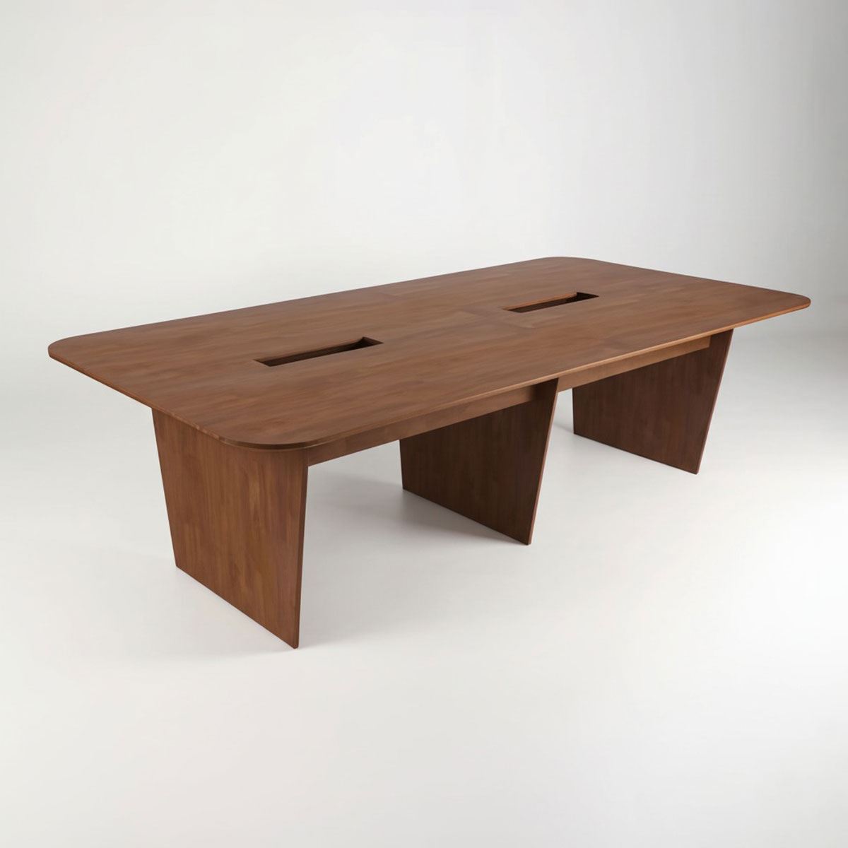 Bàn họp chữ nhật BH68009 có thiết kế vô cùng độc đáo và đẹp mắt với điểm nhấn là chân trụ tròn được làm bằng gỗ cao su. Mặt bàn sử dụng gỗ cao su tiêu chuẩn AA dày 17mm được xử lý và sơn PU chống thấm nước và cong vênh, mặt gỗ sơn PU 5 màu sắc khác nhau giúp bạn có thể lựa chọn sản phẩm phù hợp với không gian của mình.
