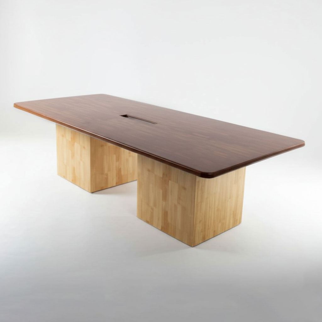 Bàn họp chữ nhật BH68008 có thiết kế vô cùng độc đáo và đẹp mắt với điểm nhấn là chân trụ tròn được làm bằng gỗ cao su. Mặt bàn sử dụng gỗ cao su tiêu chuẩn AA dày 17mm được xử lý và sơn PU chống thấm nước và cong vênh, mặt gỗ sơn PU 5 màu sắc khác nhau giúp bạn có thể lựa chọn sản phẩm phù hợp với không gian của mình.