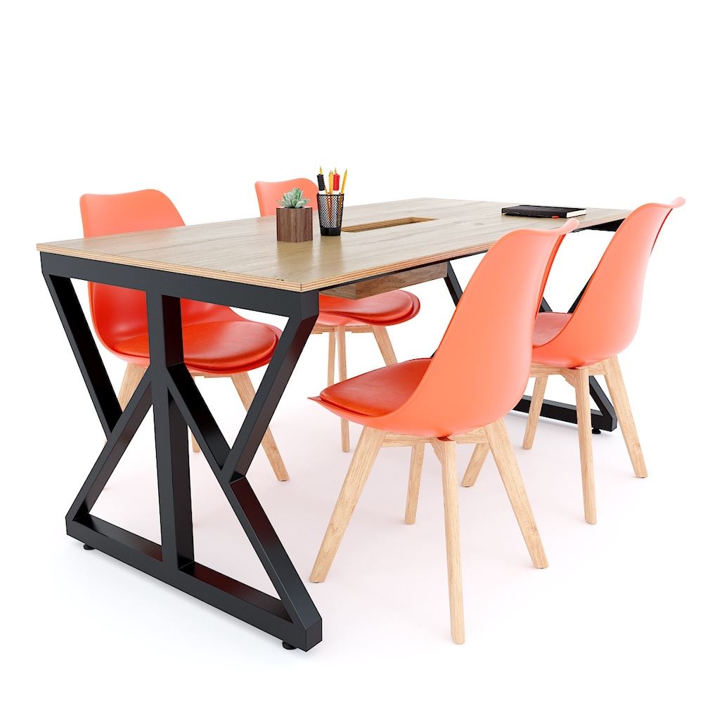 Bàn họp 160x80cm gỗ Plywood vân sồi chân sắt Kconcept