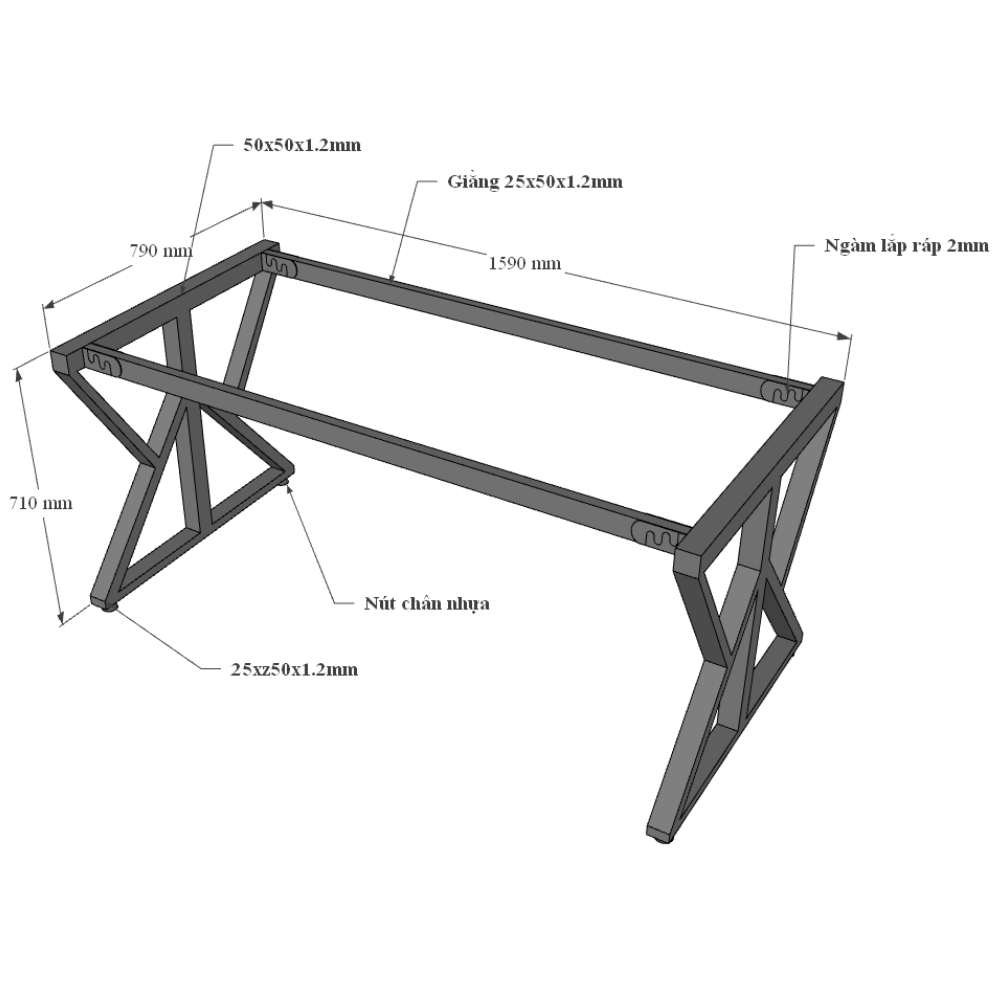 Hệ khung chân sắt cơ cấu lắp ráp tiện lợi, bề mặt sắt sơn tĩnh điện chất lượng cao