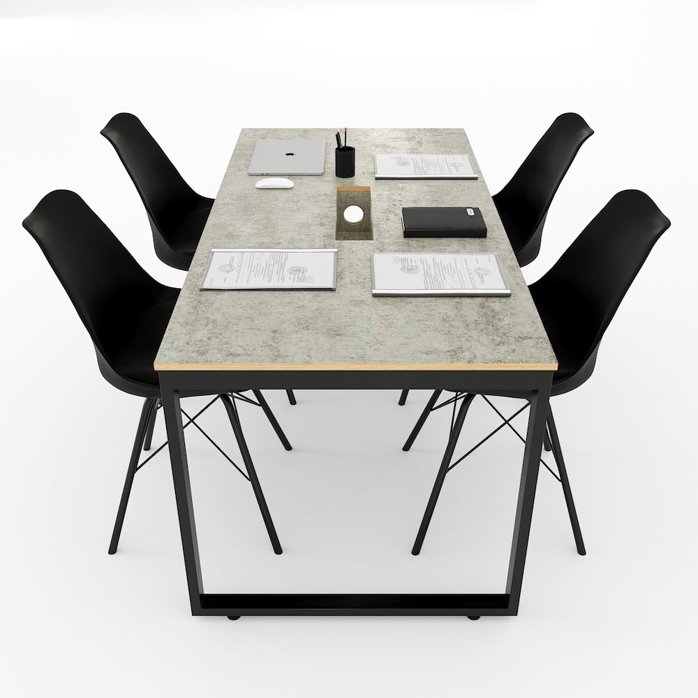 Bàn họp 160x80cm hệ Rectang HBRT056 với mặt bàn gỗ Plywood cốt gỗ tự nhiên bề mặt phủ melamin được xử lý chống thấm nước và cong vênh, mặt bàn màu bê tông độc đáo chắc chắn là điểm nhấn thú vị cho không gian làm việc. Kết hợp với mặt bàn Plywood là hệ khung chân sắt theo cơ cấu lắp ráp ngàm thông minh, tiện lợi nhưng vẫn đảm bảo độ chắc chắn, bên cạnh đó bề mặt chân sắt được phủ lớp sơn tĩnh điện cao cấp làm hạn chế ăn mòn hoá học giúp sản phẩm có độ bền cao hơn