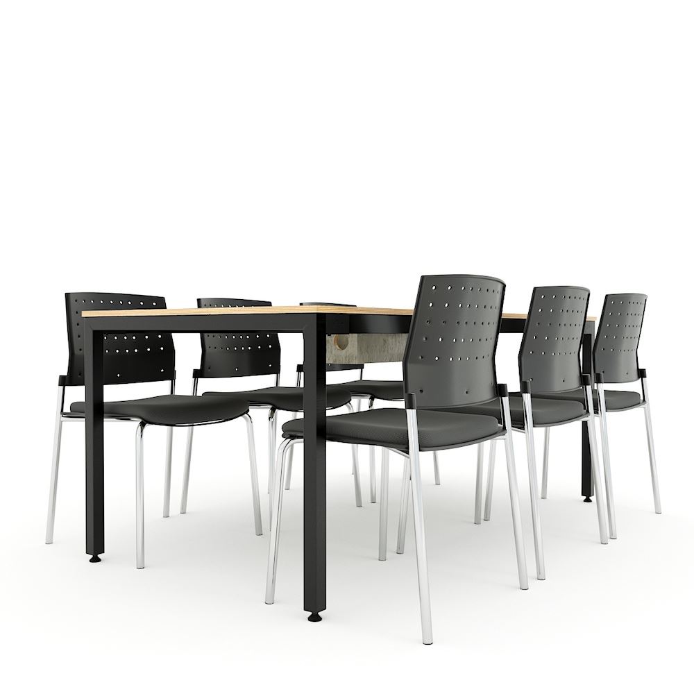 Bàn họp 180x90cm chân sắt hệ Uconcept HBUC053 với mặt bàn gỗ Plywood cốt gỗ tự nhiên bề mặt phủ melamin được xử lý chống thấm nước và cong vênh, mặt bàn màu bê tông độc đáo chắc chắn là điểm nhấn thú vị cho không gian làm việc. Kết hợp với mặt bàn Plywood là hệ khung chân sắt theo cơ cấu lắp ráp ngàm thông minh, tiện lợi nhưng vẫn đảm bảo độ chắc chắn, bên cạnh đó bề mặt chân sắt được phủ lớp sơn tĩnh điện cao cấp làm hạn chế ăn mòn hoá học giúp sản phẩm có độ bền cao hơn