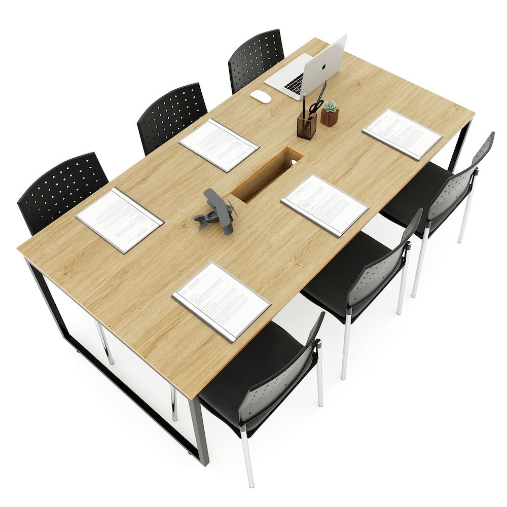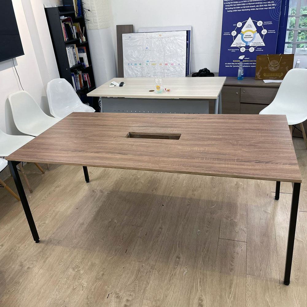 Bàn họp 180x90cm gỗ Plywood phủ melamin vân sồi chân hệ Slean có quỳ