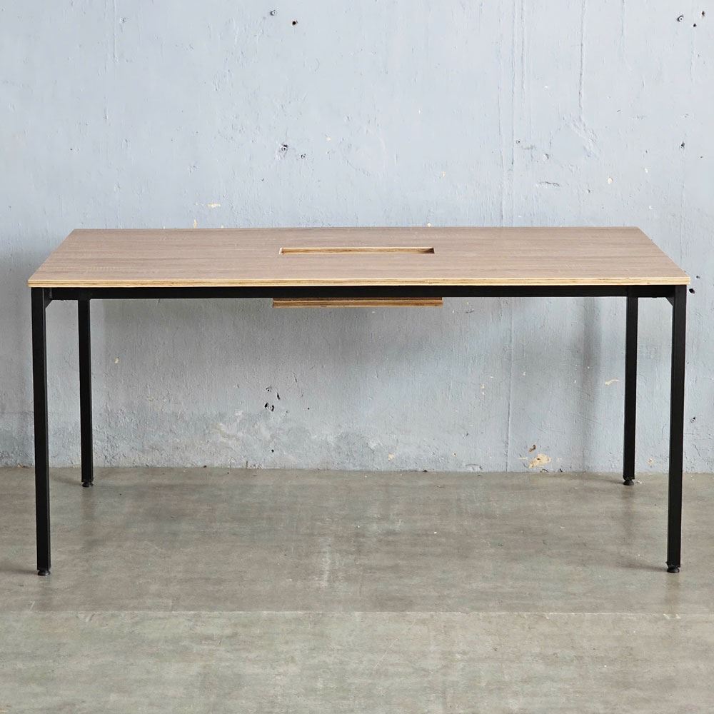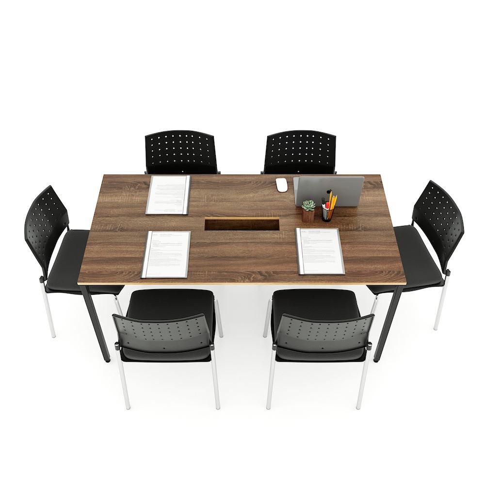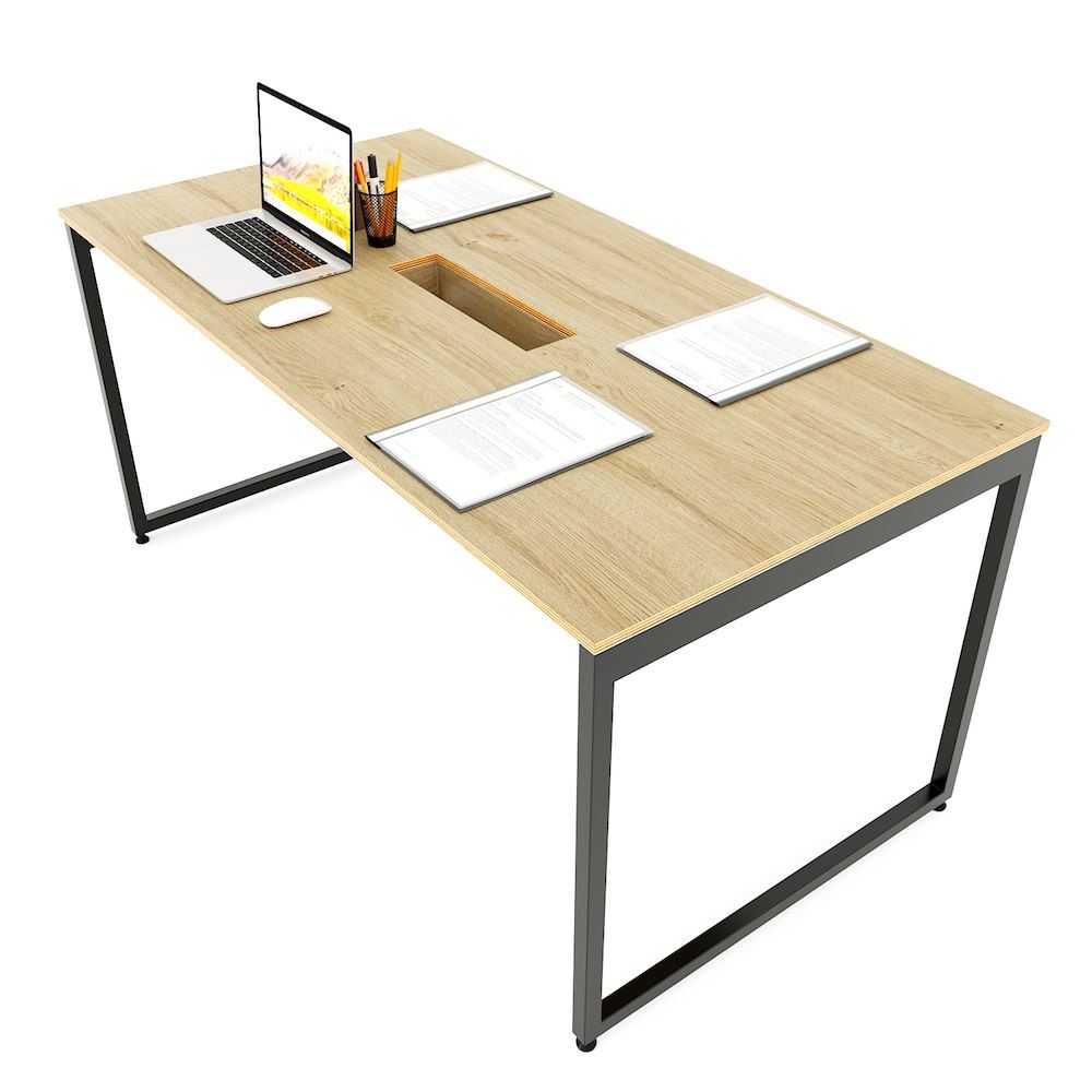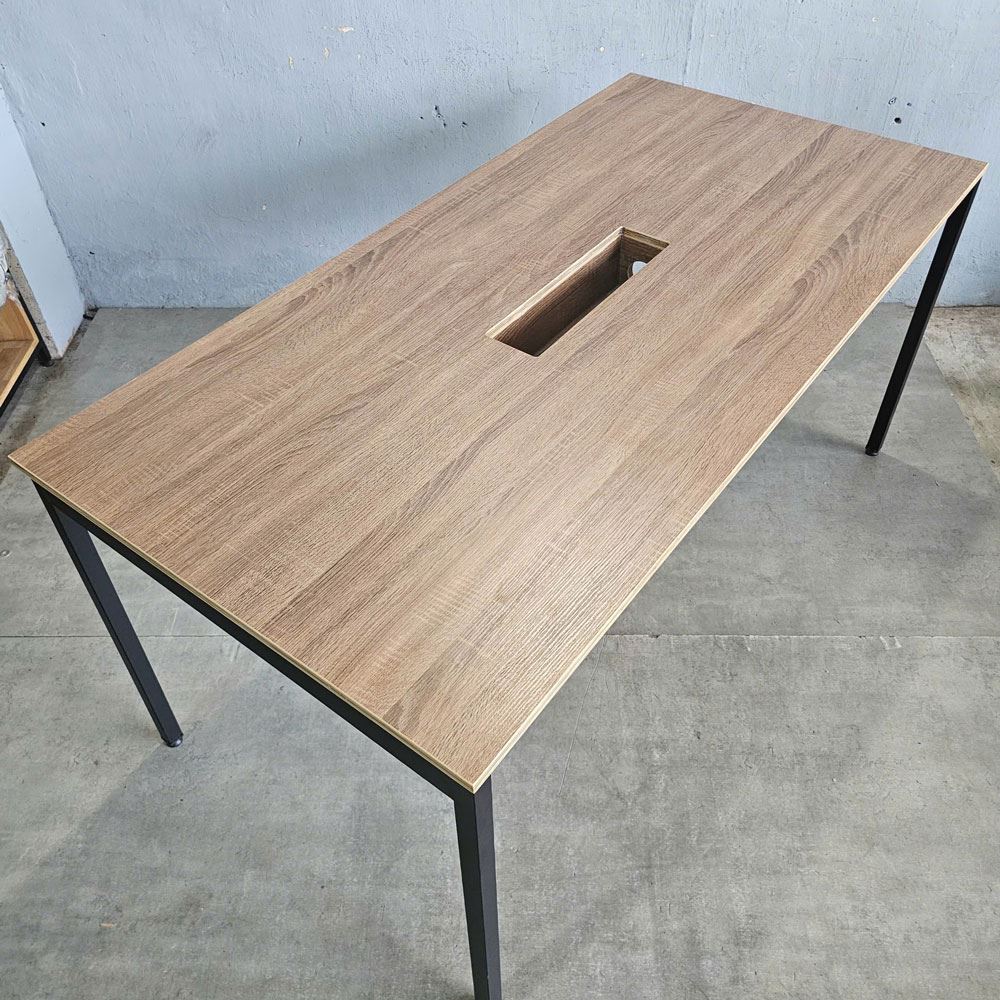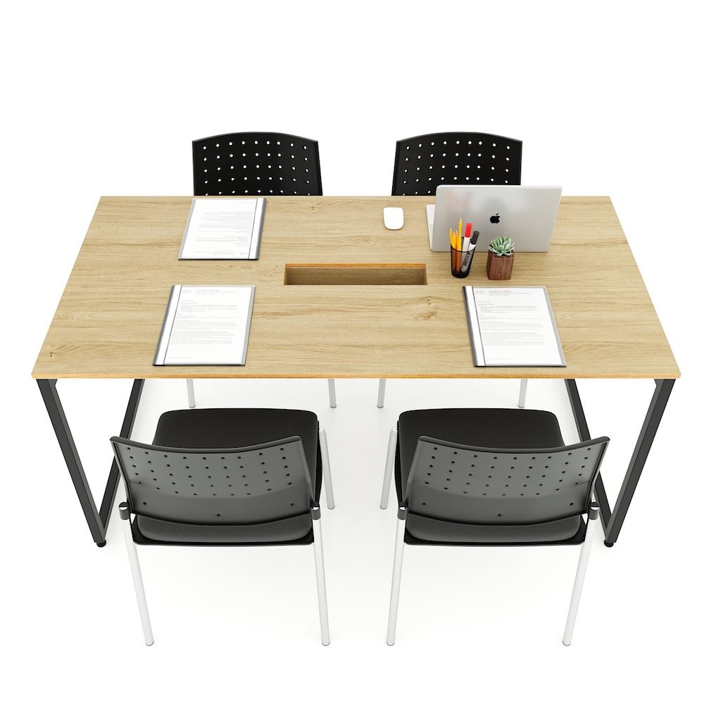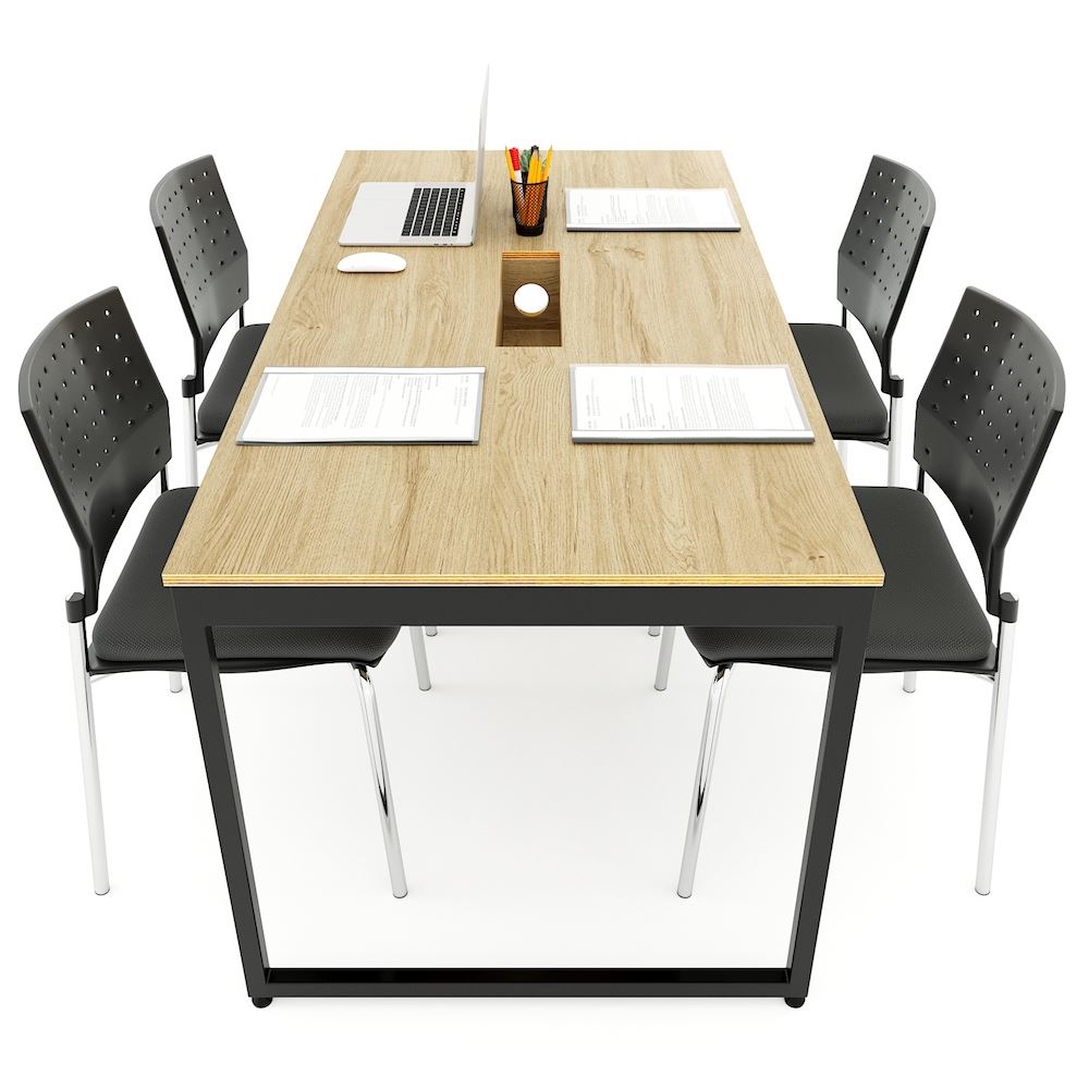Bàn họp 160x80cm gỗ Plywood phủ melamin vân sồi chân hệ Slean kiểu chân có quỳ