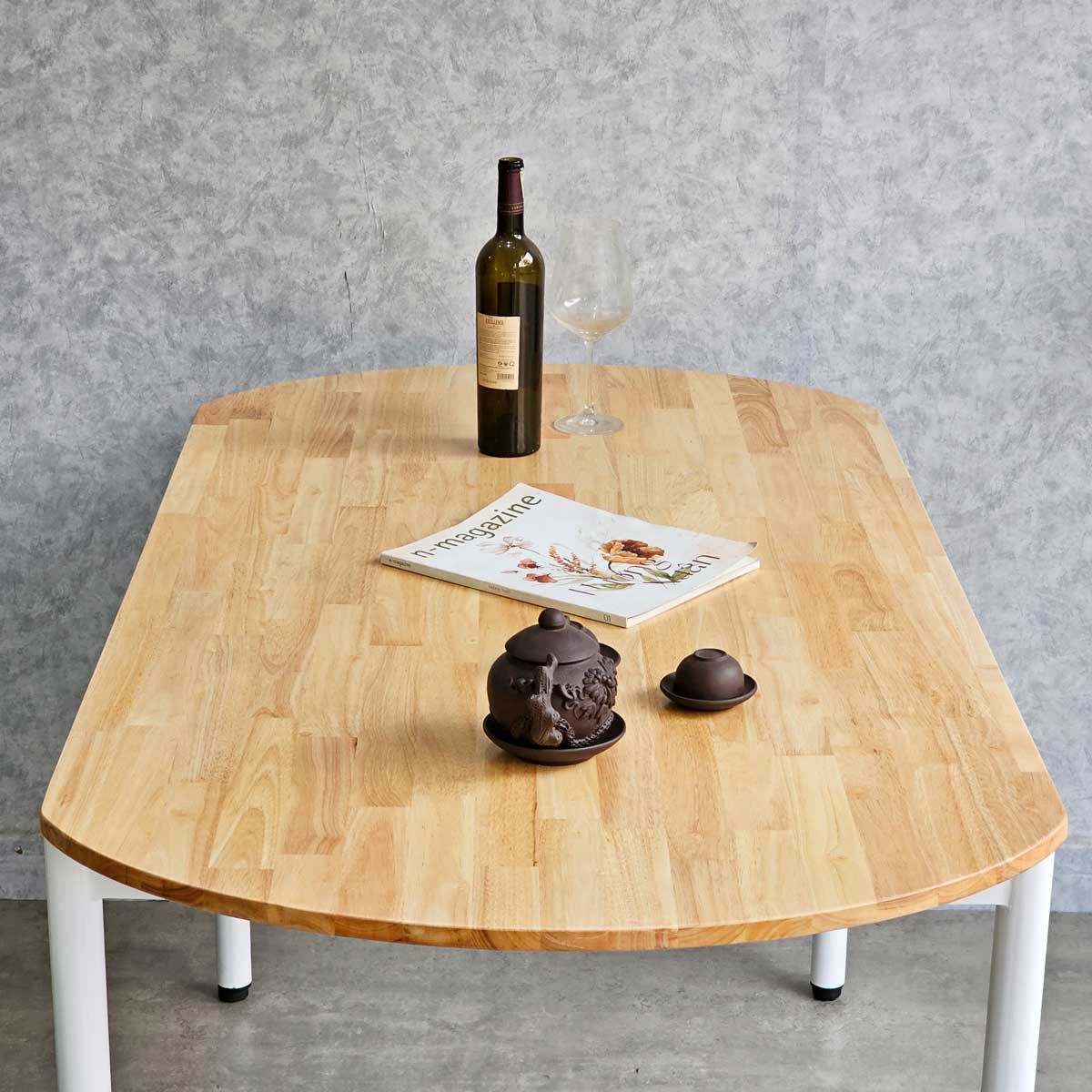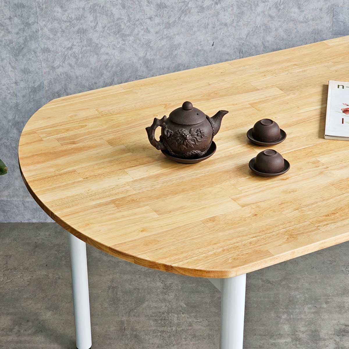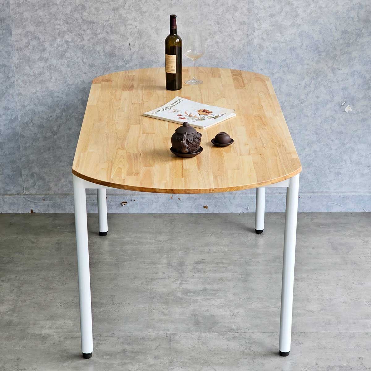 Mặt bàn cắt hình oval bo tròn 2 cạnh, mang đến sự mềm mại và thanh lịch