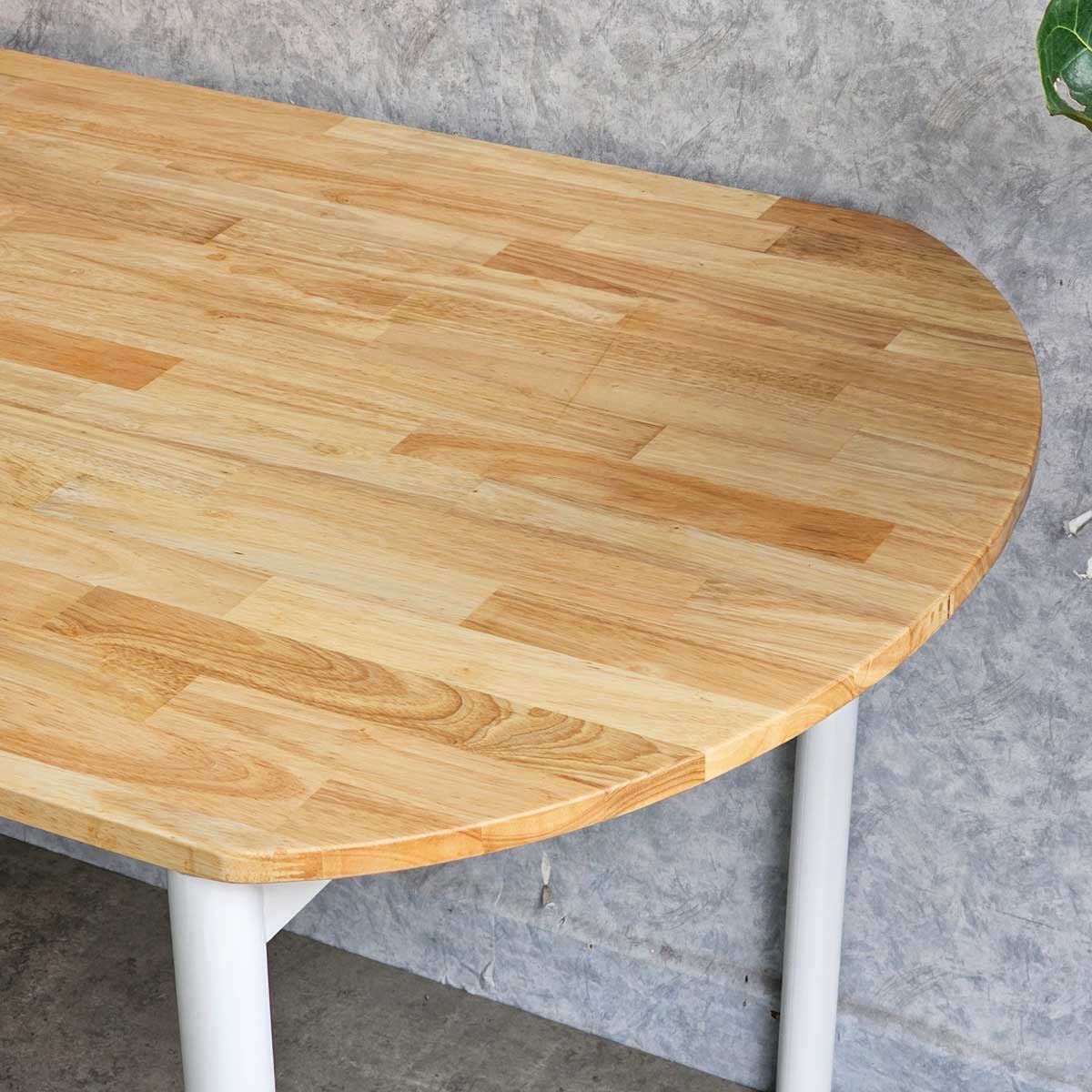 Mặt bàn được làm từ gỗ cao su AA chuẩn xuất khẩu, được xử lý chàm nhám mịn màng và phủ chống thấm nước, giúp tăng độ bền và đảm bảo tính thẩm mỹ