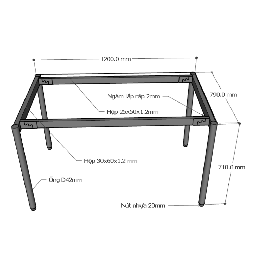 Chân bàn sắt lắp ráp ngàm với chân trụ tròn hiện đại và đế cao su chắc chắn, đảm bảo độ bền vững và an toàn khi sử dụng