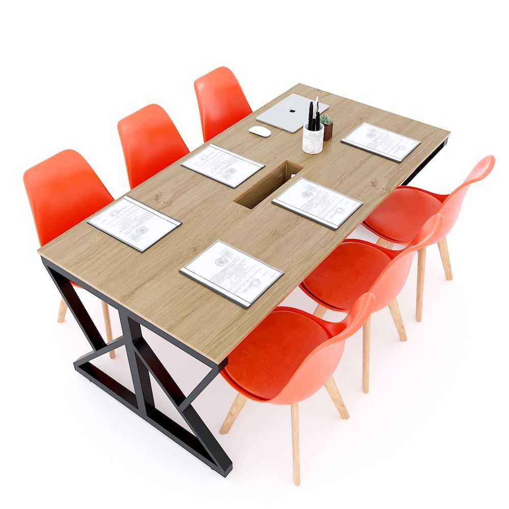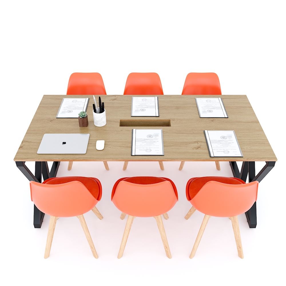 Bàn họp 180x90cm gỗ Plywood vân sồi chân sắt Kconcept