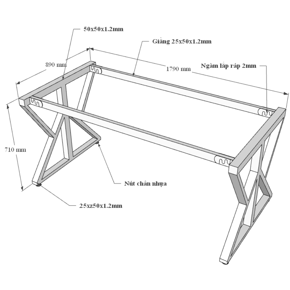 Hệ khung chân sắt cơ cấu lắp ráp tiện lợi, bề mặt sắt sơn tĩnh điện chất lượng cao