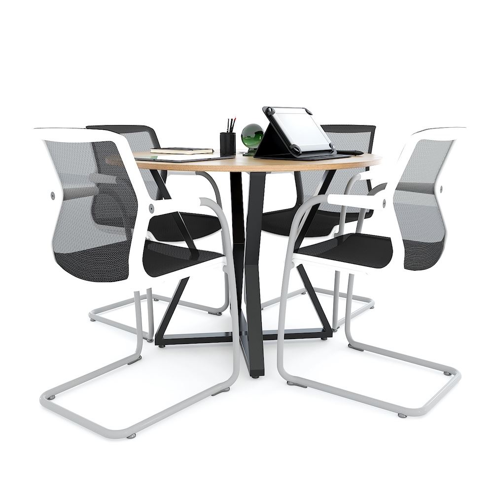 Bàn họp tròn 1m gỗ Plywood phủ melamin chân sắt