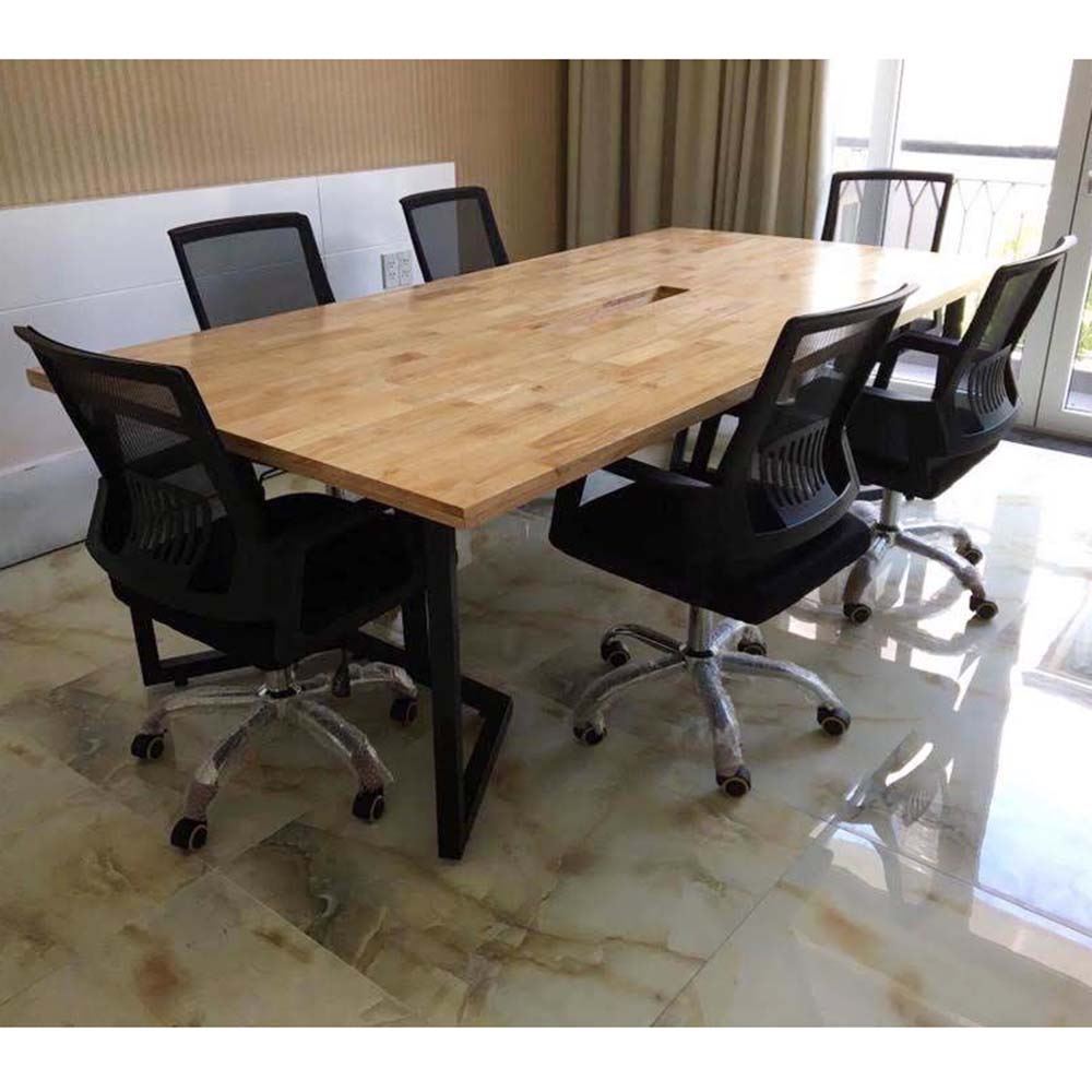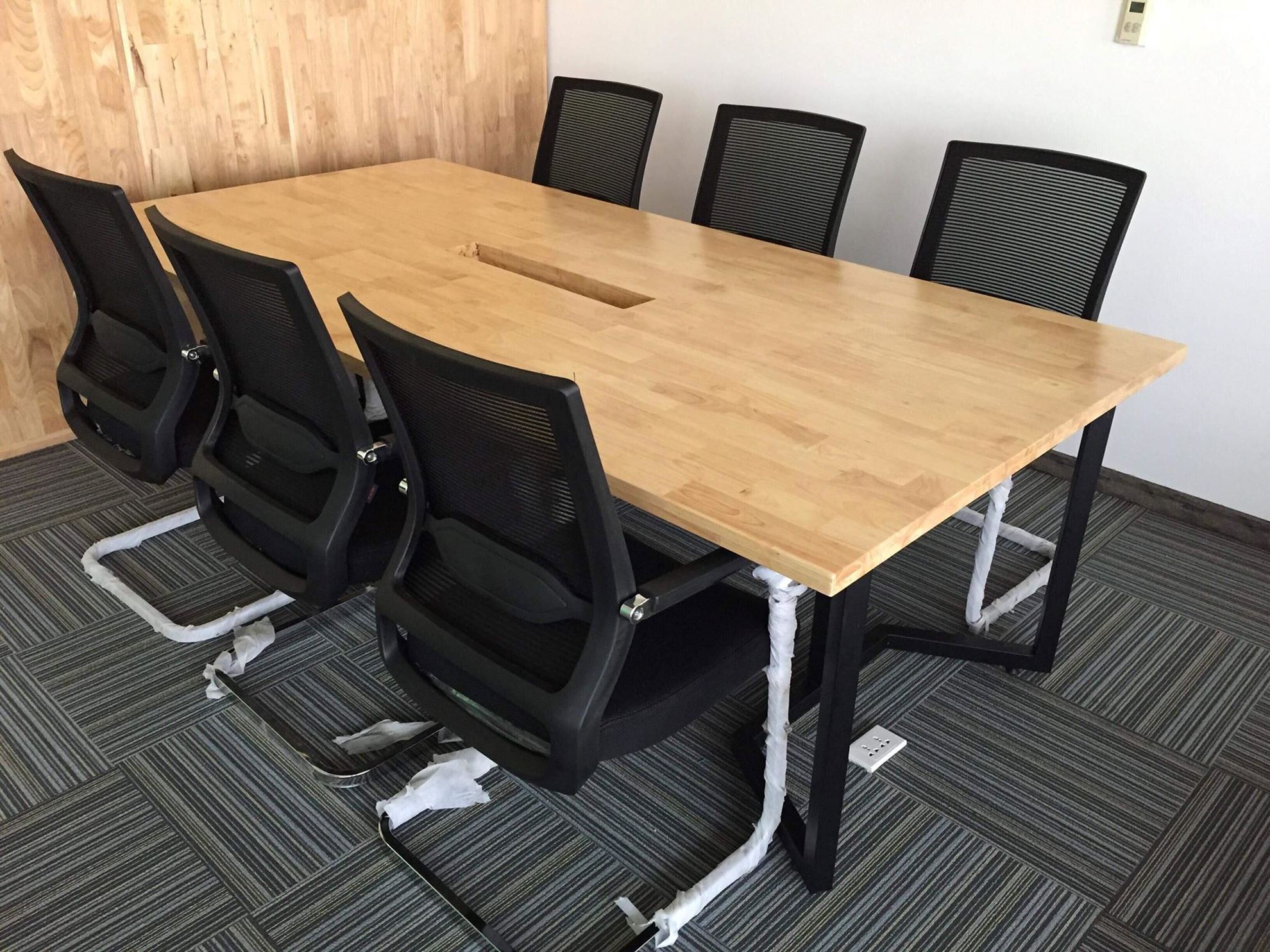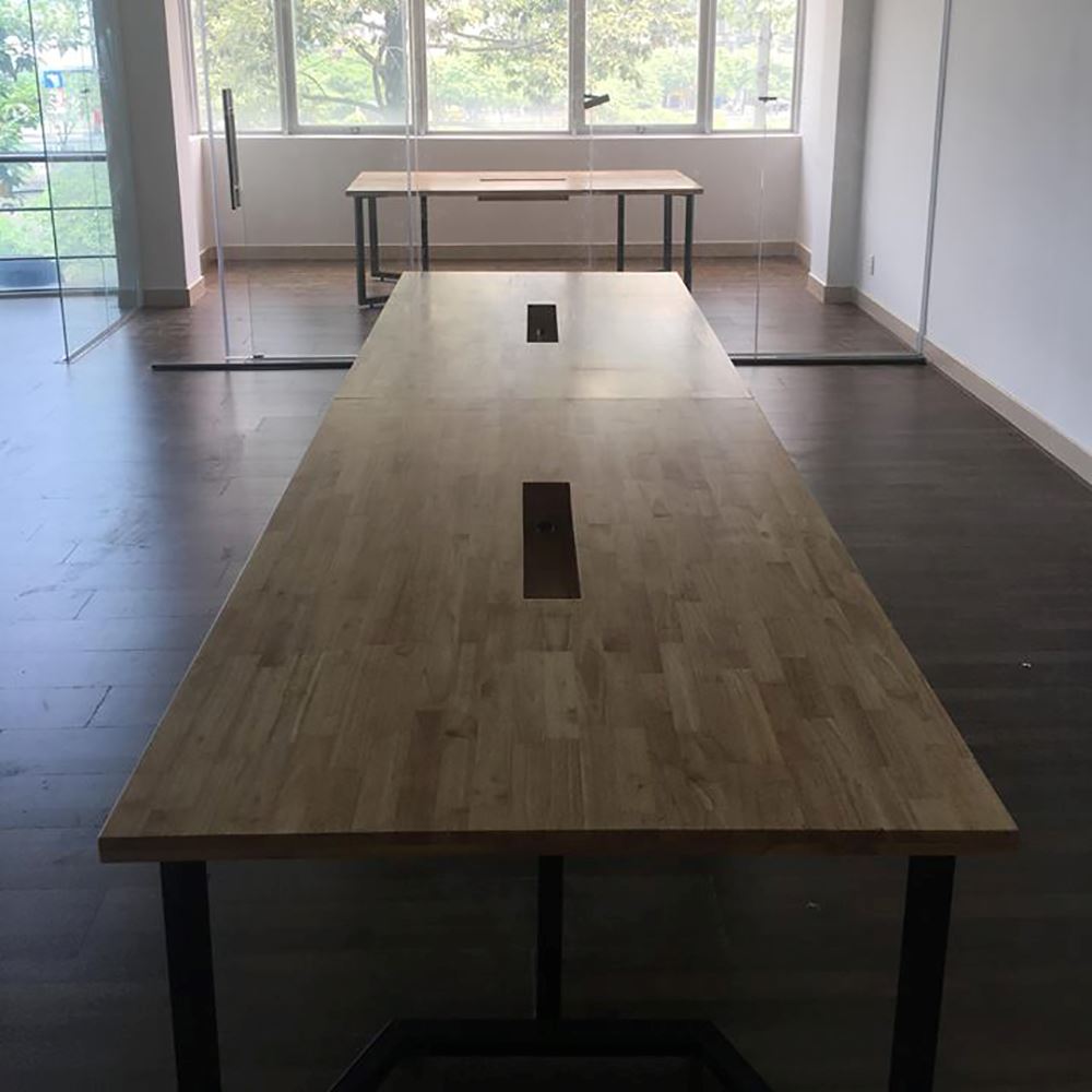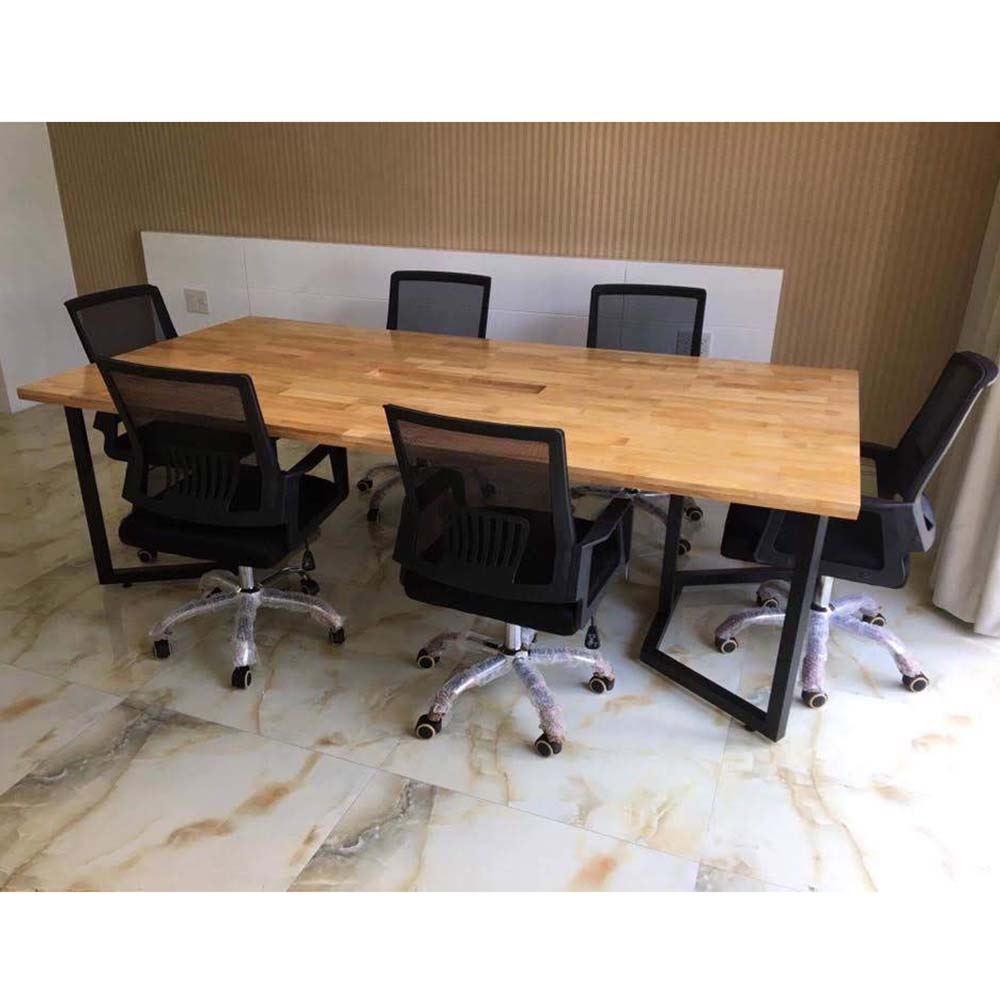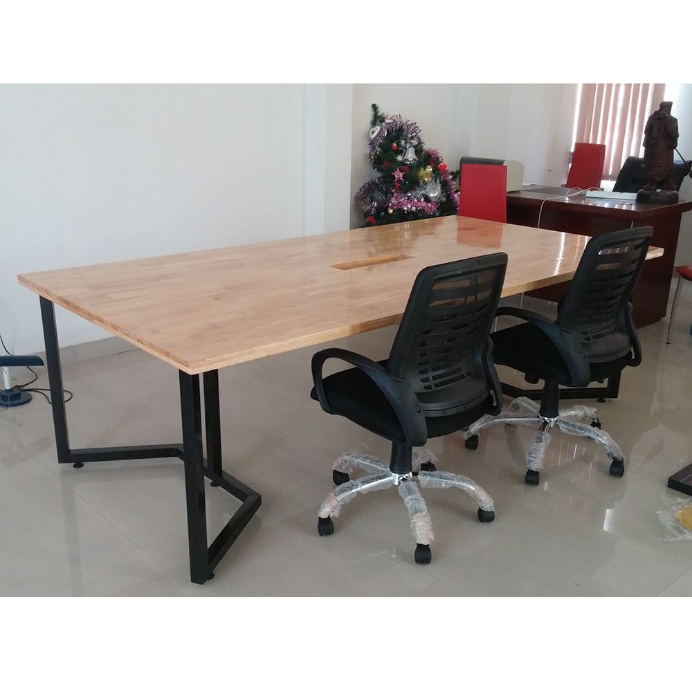 Bàn họp chân sắt BH68001 có kích thước 2m4 x 1m2 phù hợp với số lượng người từ 6 - 12 người. Mặt bàn được làm bằng chất liệu gỗ cao su chuẩn xuất khẩu, đã qua xử lý công nghệ chống cong vênh và chống thấm nước, được sơn phủ PU chống trầy rất tốt. Chân bàn được làm bằng sắt hộp, sơn tĩnh điện chống gỉ rất chắc chắn, với thiết kế khung hình chữ U luôn đảm bảo độ chắc chắn cho bàn và giúp tận dụng không gian rất tốt.
