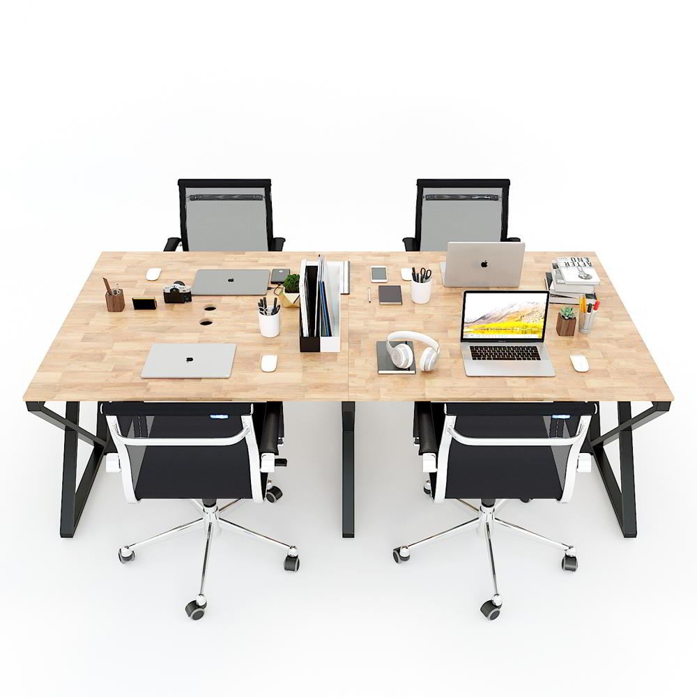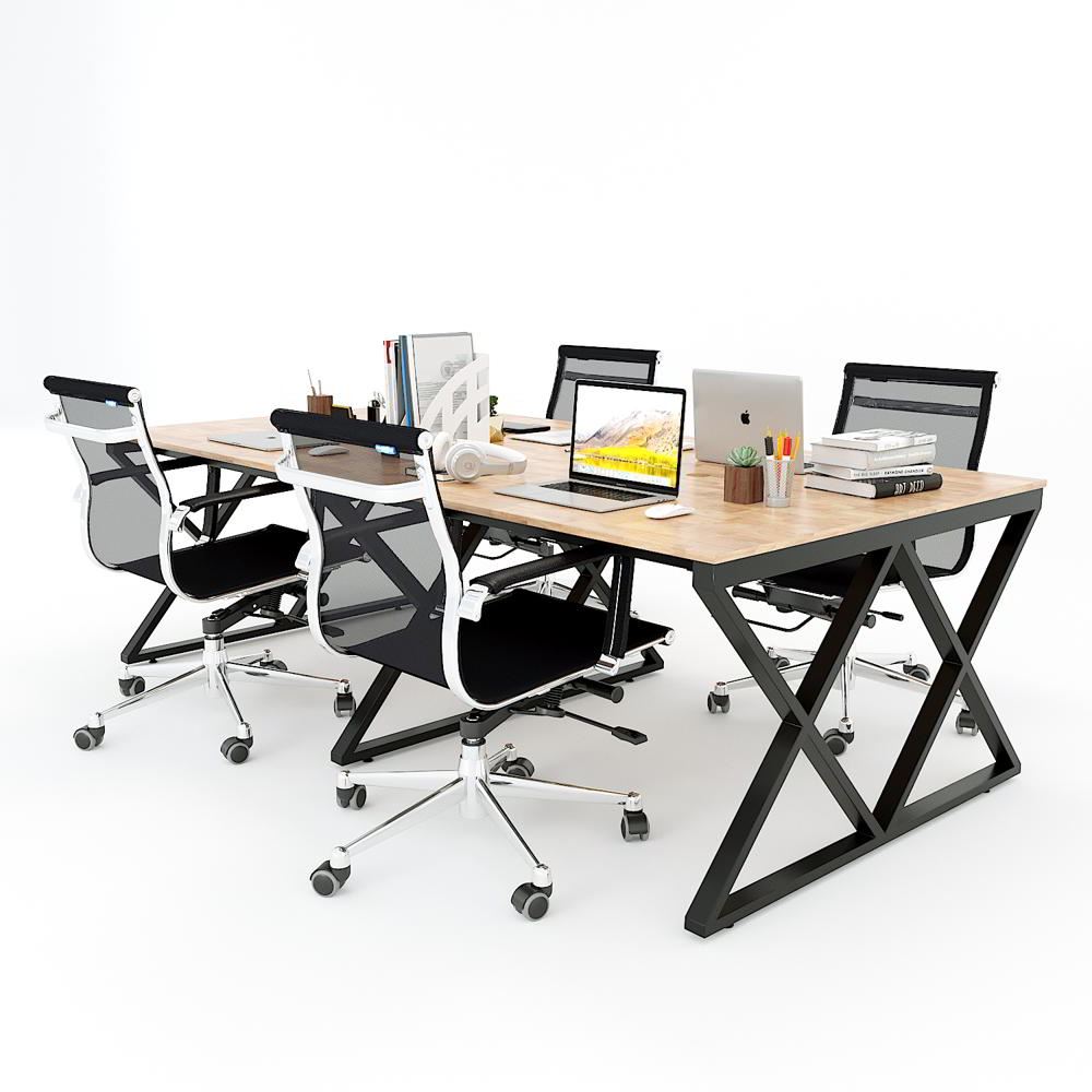 Bàn cụm 4 HBXC008 XConcept chân sắt chữ nhật 25x50. Bàn văn phòng gỗ cao su ghép tiêu chuẩn AA dày 17mm PU màu gỗ tự nhiên luôn có một vẻ đẹp riêng, thân thiện với môi trường, đối với các văn phòng mở, văn phòng kết hợp với cây xanh thì việc sử dụng bàn gỗ cao su chân sắt kết hợp trở nên hoàn hảo. Chất liệu gỗ cao su tại HomeOffice là gỗ ghép dày 17mm tiêu chuẩn AA ( 2 mặt đẹp) được xử lý qua 4 công đoạn trước khi PU hoàn thiện cho bề mặt sản phẩm rất đẹp mắt, chống nước tuyệt đối. Khung chân sắt sơn tĩnh điện với cơ cấu ngàm lắp ráp dễ dàng.