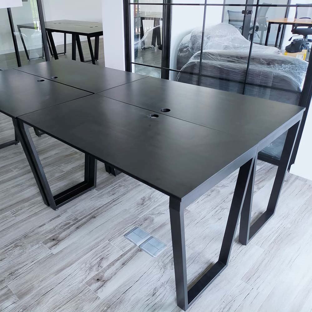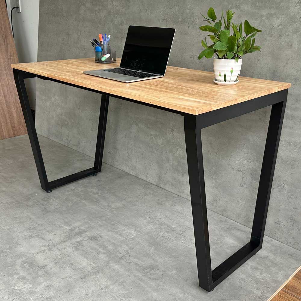 Bàn làm việc HBTC002 Trapeze Concept chân sắt chữ nhật 25x50. Bàn văn phòng gỗ cao su ghép tiêu chuẩn AA dày 17mm PU màu gỗ tự nhiên luôn có một vẻ đẹp riêng, thân thiện với môi trường, đối với các văn phòng mở, văn phòng kết hợp với cây xanh thì việc sử dụng bàn gỗ cao su chân sắt kết hợp trở nên hoàn hảo. Chất liệu gỗ cao su tại HomeOffice là gỗ ghép dày 17mm tiêu chuẩn AA ( 2 mặt đẹp) được xử lý qua 4 công đoạn trước khi PU hoàn thiện cho bề mặt sản phẩm rất đẹp mắt, chống nước tuyệt đối. Khung chân sắt sơn tĩnh điện với cơ cấu ngàm lắp ráp dễ dàng.