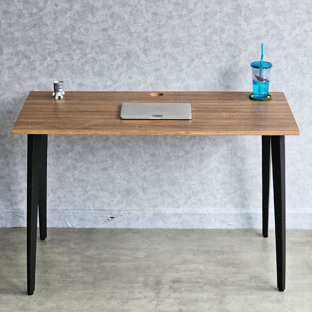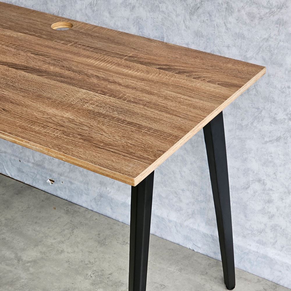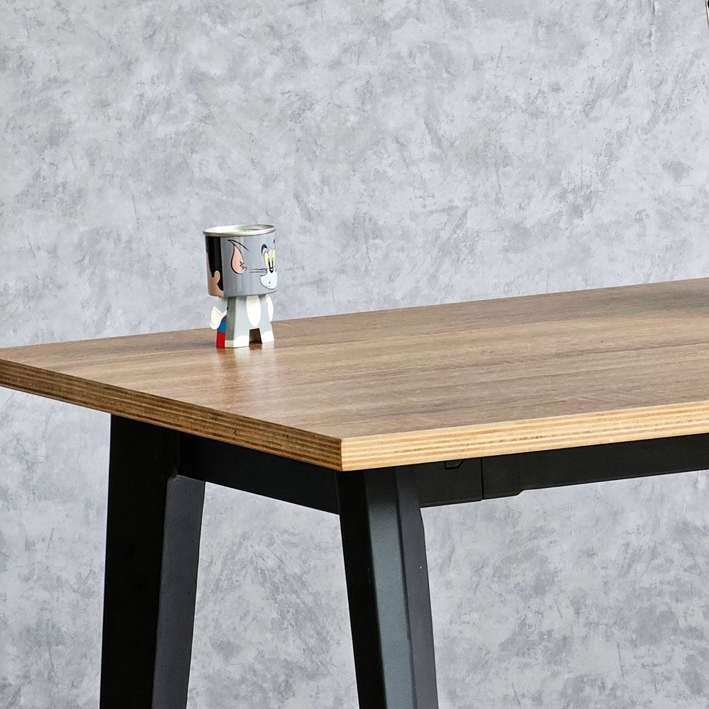 Với mặt bàn được làm bằng gỗ plywood, có cấu trúc từ những tấm ván ép lại với nhau tạo ra một cấu trúc khá vững chắc. Sự xen kẽ giữa các lớp gỗ và việc sử dụng keo chịu nước để liên kết chúng làm tăng tính cứng của vật liệu. Điều này cho phép gỗ plywood chịu được sức ép và trọng lượng lớn hơn so với gỗ thông thường mà không bị cong vênh hay biến dạng nhiều. Hệ khung chân sắt sử dụng loại sắt dày dặn, giúp cho bàn luôn đảm bảo độ cứng cáp, ổn định và khả năng chịu lực tốt. Bề mặt khung chân sắt được phủ một lớp sơn tĩnh điện bảo vệ giúp chống ăn mòn, tăng tuổi thọ sản phẩm và đồng thời đảm bảo tính thẩm mỹ cao.
