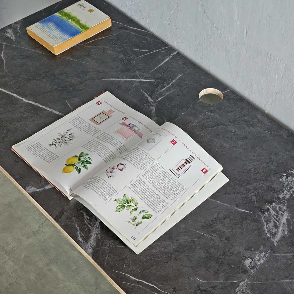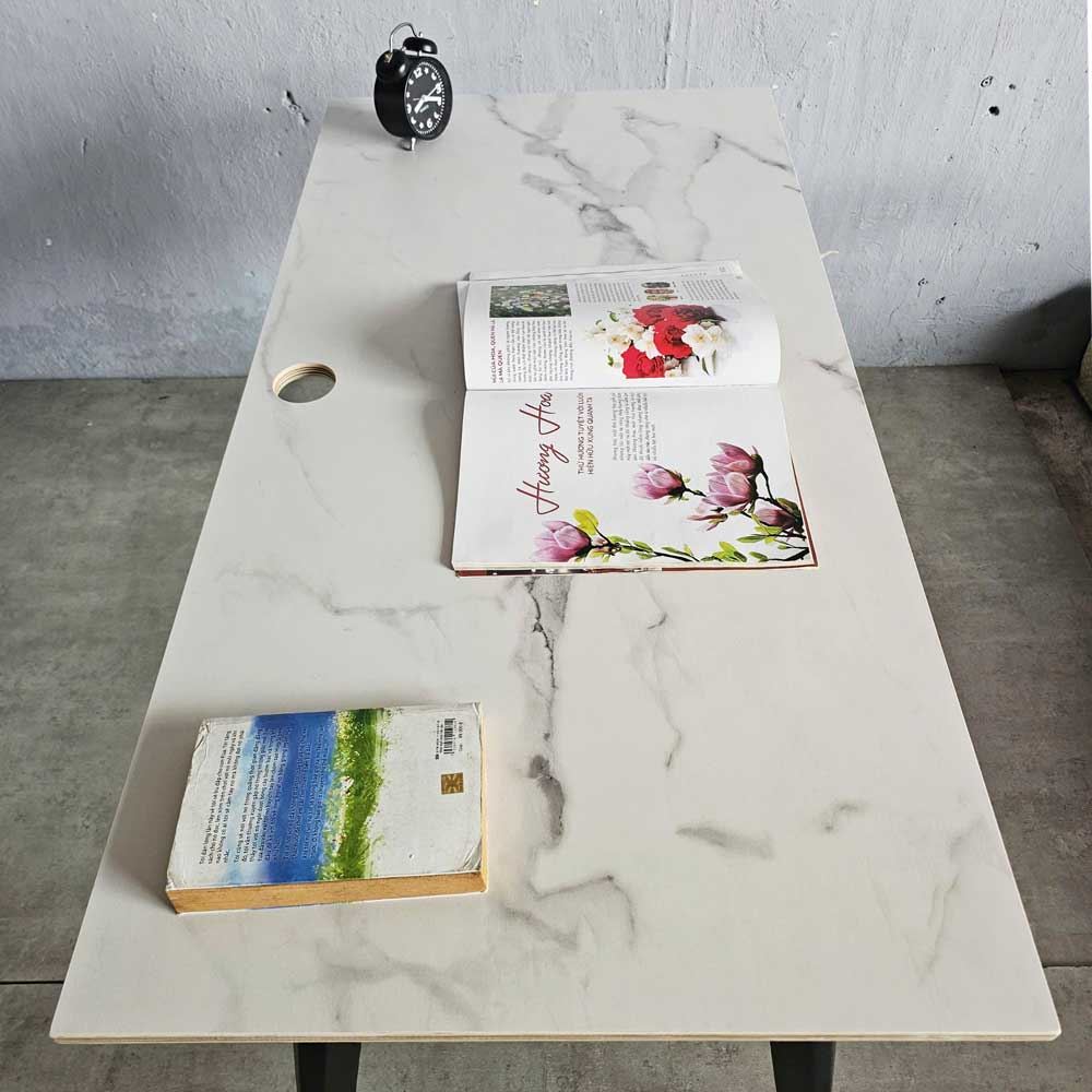 Mặt bàn làm từ ván gỗ plywood phủ melamin vân giả đá Marble/Veneto không chỉ mang đến vẻ đẹp sang trọng, đẳng cấp mà còn tạo nên một không gian làm việc gần gũi với thiên nhiên. Cấu trúc vân đá tinh tế, mềm mại như những tác phẩm nghệ thuật, gợi lên cảm giác thư thái và bình yên. Kết hợp với khung chân sắt đa giác chắc chắn, bàn làm việc HDG022 trở thành điểm nhấn ấn tượng, tôn lên vẻ đẹp hiện đại của không gian. Sự kết hợp này sẽ mang đến cho bạn cảm giác như đang làm việc giữa thiên nhiên, giúp bạn cảm thấy thư thái và sáng tạo hơn.