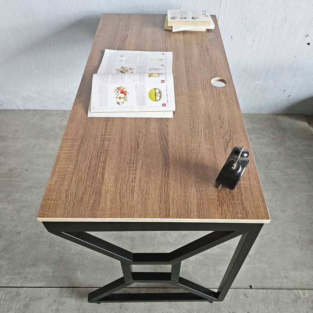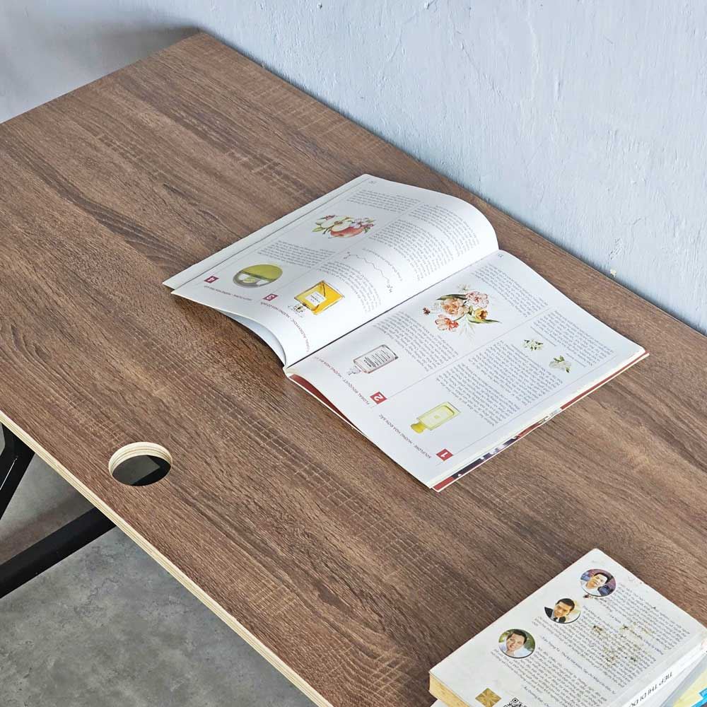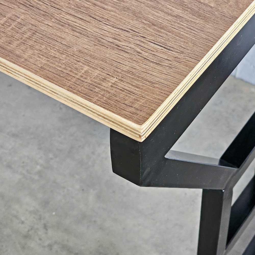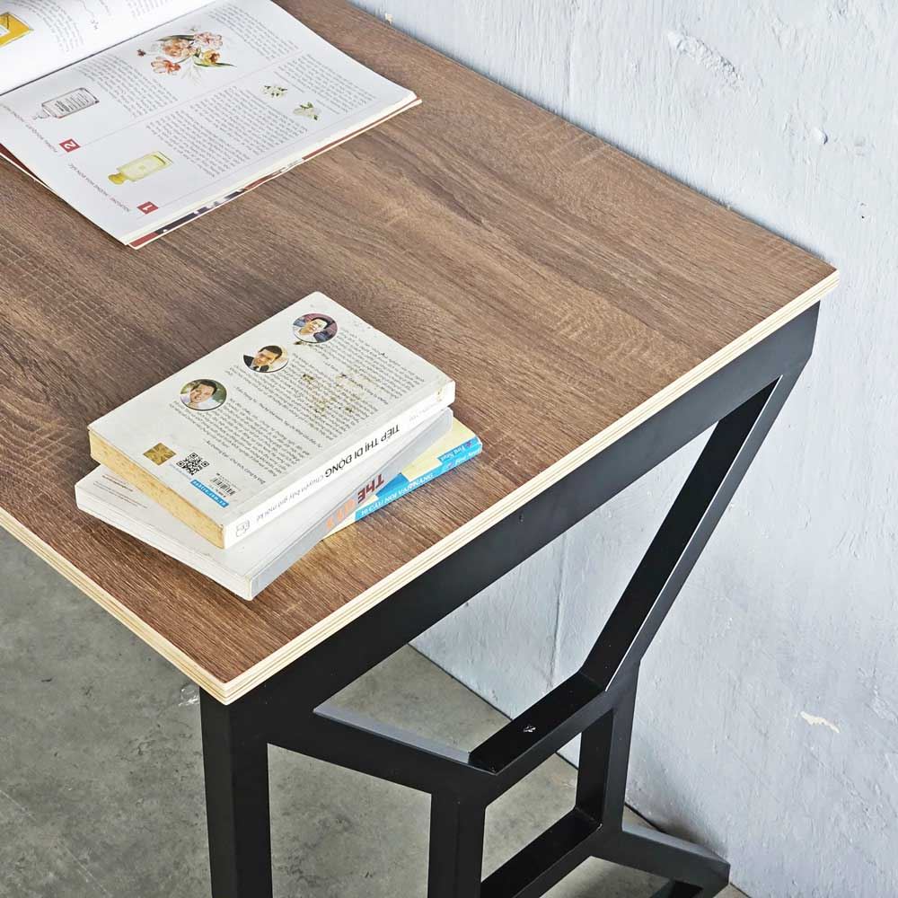 Mặt bàn làm việc được làm bằng chất liệu plywwod phủ melamine, với vân gỗ tự nhiên (vân sáng/vân tối) hoặc vân bê tông cá tính, không chỉ mang đến vẻ đẹp sang trọng mà còn có khả năng chống trầy xước rất tốt. Ván plywood được xử lý chống thấm vượt trội, đảm bảo độ bền bỉ cho mặt bàn. Sự kết hợp giữa chất liệu ván plywood và khung sắt mạnh mẽ tạo nên một tổng thể hài hòa, cân đối, mang đến cảm giác vừa gần gũi, vừa hiện đại cho không gian làm việc của bạn. Đặc biệt, thiết kế cạnh bàn lộ ra những đường line gỗ độc đáo càng làm tăng thêm vẻ đẹp tự nhiên và cuốn hút cho sản phẩm.