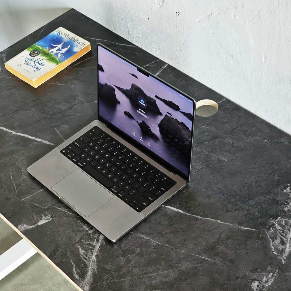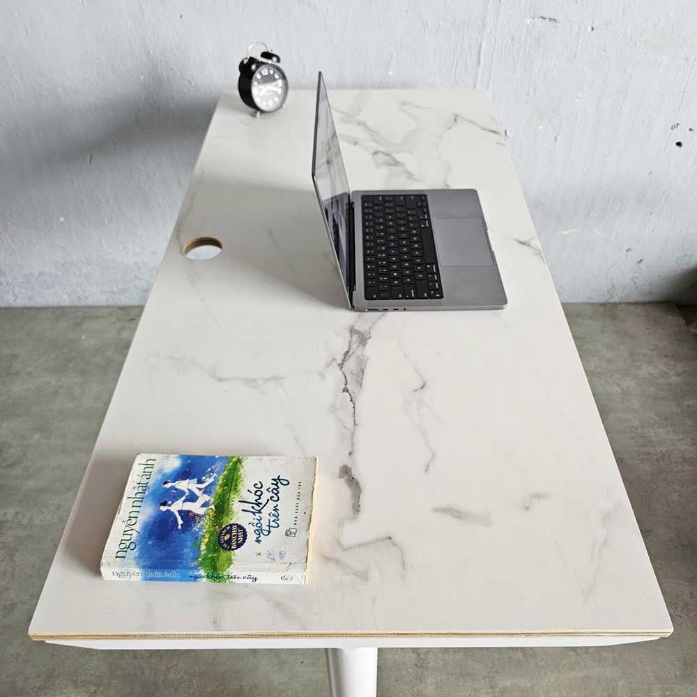 Với mặt bàn phủ melamin vân giả đá, HBTO024 mang đến một trải nghiệm thị giác đầy ấn tượng. Hoa văn vân đá không chỉ tạo nên vẻ đẹp sang trọng, đẳng cấp mà còn gợi lên cảm giác thư thái, gần gũi với thiên nhiên. Mỗi đường vân đều như một tác phẩm nghệ thuật độc nhất, mang đến sự khác biệt cho không gian làm việc của bạn.