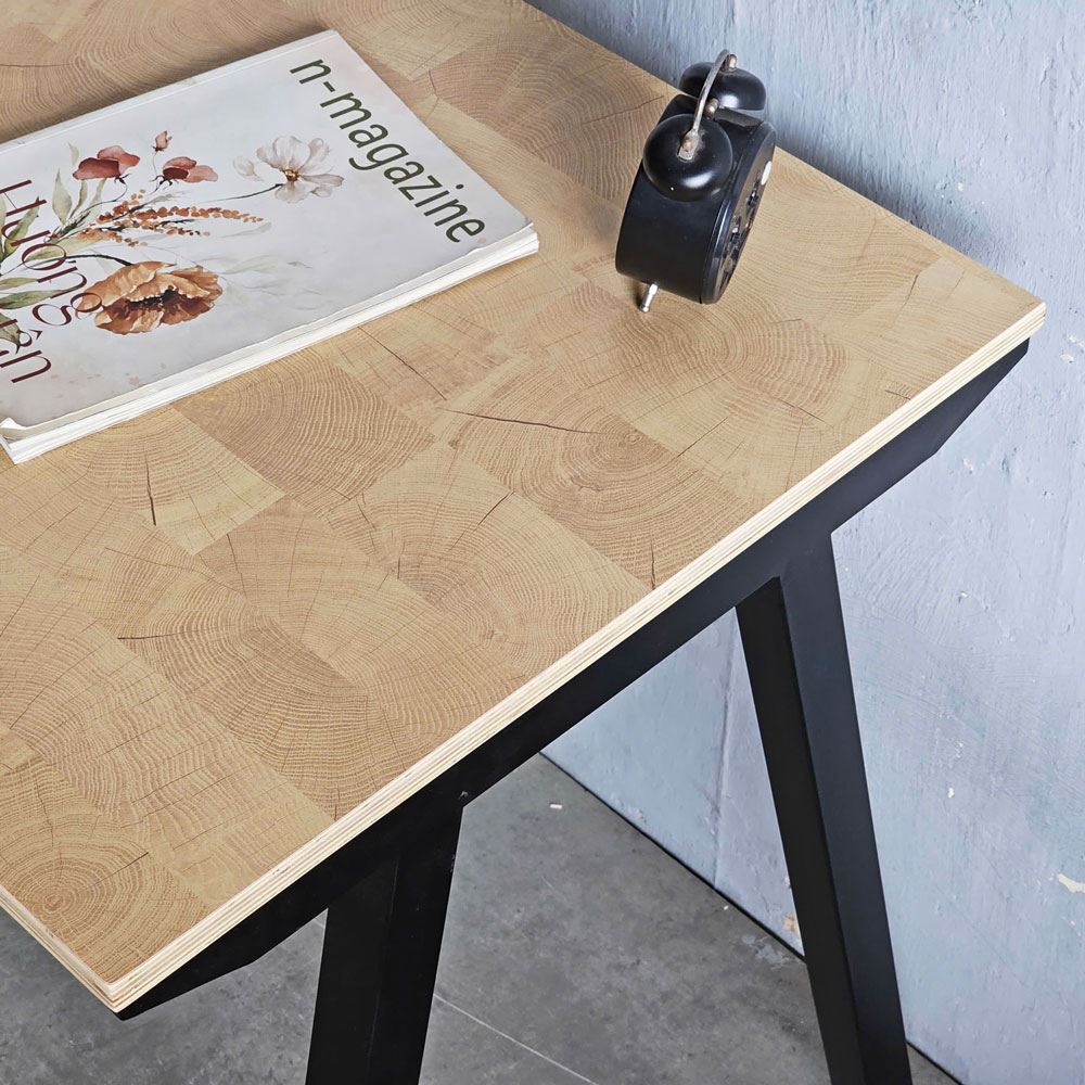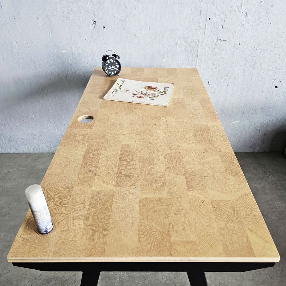 Điểm nhấn đặc biệt của bàn làm việc này chính là mặt bàn gỗ plywood vân "CUT TRUNK". Vân gỗ "CUT TRUNK" là một tuyệt tác của thiên nhiên, mang đến vẻ đẹp mộc mạc, gần gũi và vô cùng ấn tượng. Những đường vân gỗ uốn lượn, tự nhiên như những tác phẩm nghệ thuật trừu tượng, thể hiện rõ nét từng vòng tròn tăng trưởng của cây. Các đường ghép nối được sắp xếp một cách ngẫu nhiên, tạo nên những hình khối độc đáo, thu hút mọi ánh nhìn.