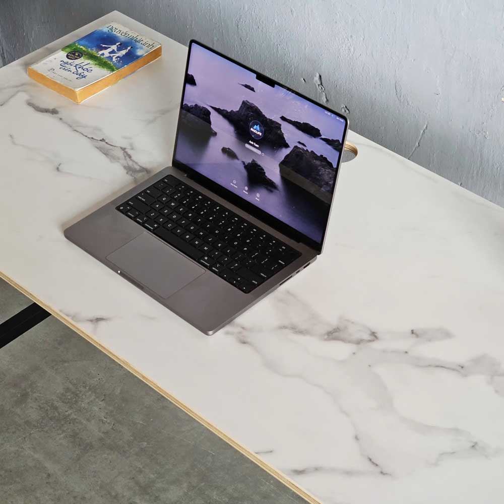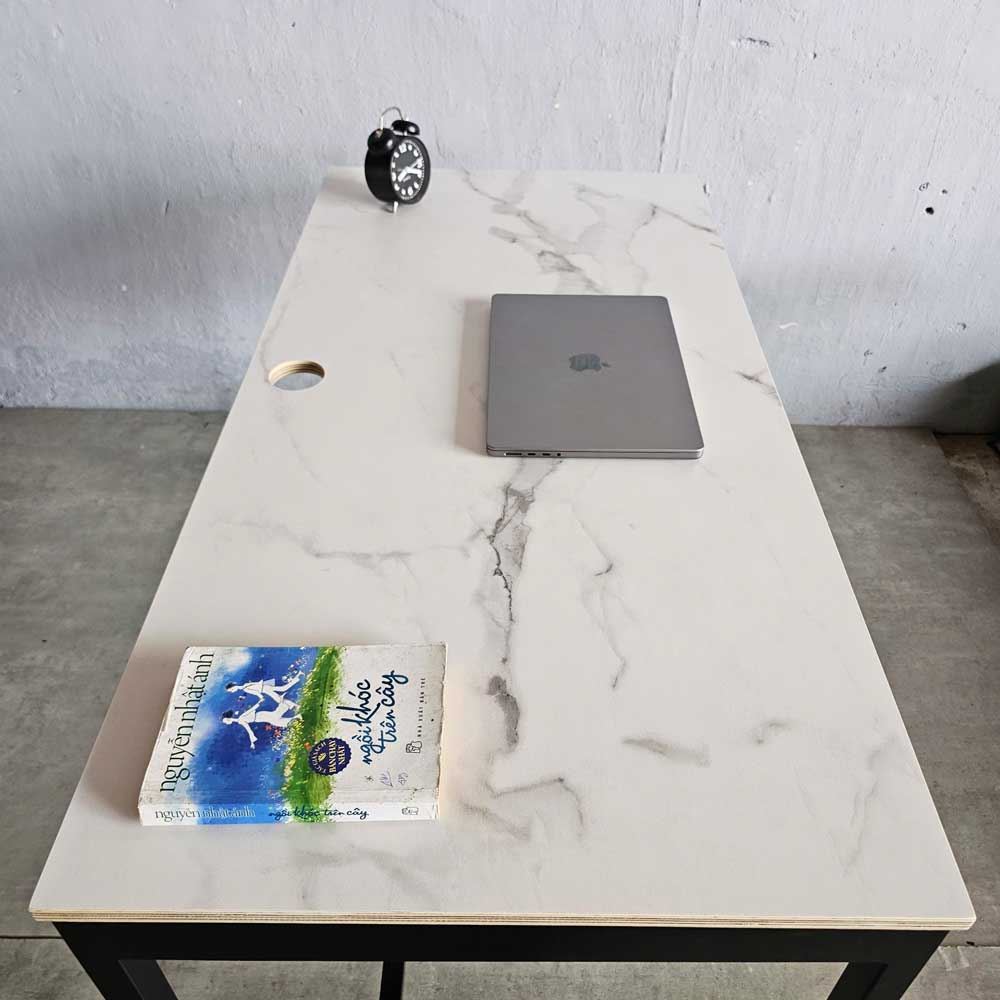 Mặt bàn gỗ plywood được phủ melamin vân giả đá, một tuyệt tác của công nghệ hiện đại, tái hiện chân thực vẻ đẹp tự nhiên của đá marble. Những đường vân mềm mại, uyển chuyển như những tác phẩm điêu khắc tinh xảo, mang đến cảm giác sang trọng và đẳng cấp cho không gian làm việc của bạn. Không chỉ vậy, lớp phủ melamin còn sở hữu khả năng chống trầy xước, chống thấm nước vượt trội, đảm bảo bề mặt bàn luôn sáng bóng và bền đẹp theo thời gian.