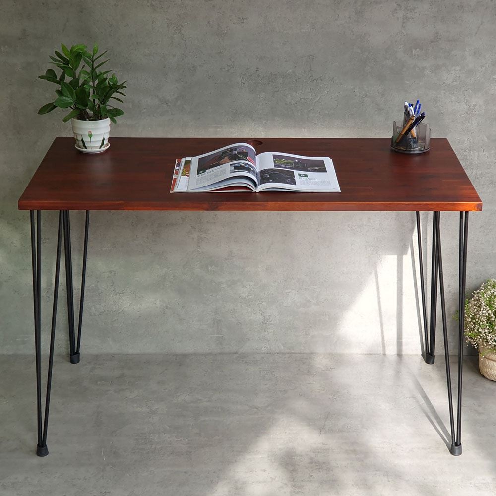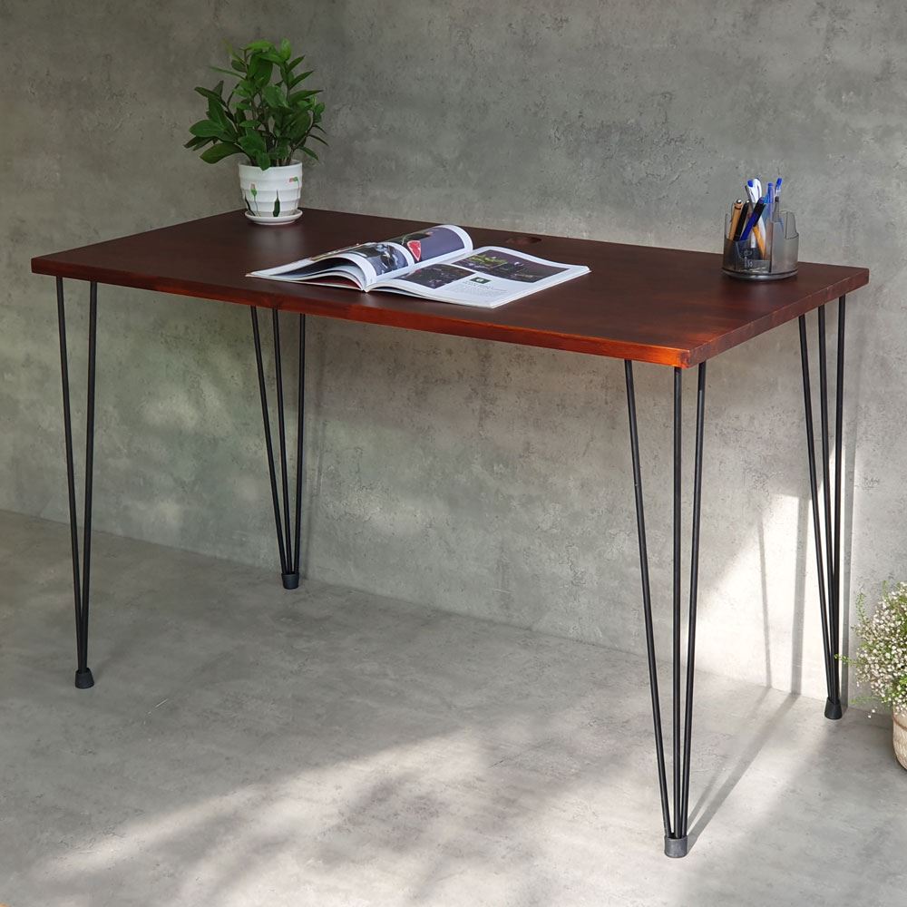 Bàn làm việc 120x60cm hệ Wooden HBWD024 với mặt bàn làm từ gỗ tràm 25mm tiêu chuẩn AA được xử lý PU hoàn thiện cho bề mặt sản phẩm rất đẹp mắt, chống nước tuyệt đối kết hợp cùng hân sắt Hairpin mang tính thẩm mỹ cao nhưng không kém phần chắc chắn, bề mặt chân sắt phủ lớp sơn tĩnh điện đảm bảo độ bền cao. Mặt bàn gỗ tràm màu gỗ tự nhiên kết hợp chân hairpin tạo nên thiết kế sản phẩm trang nhã, phù hợp với nhiều không gian.