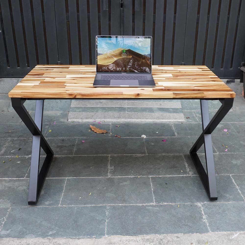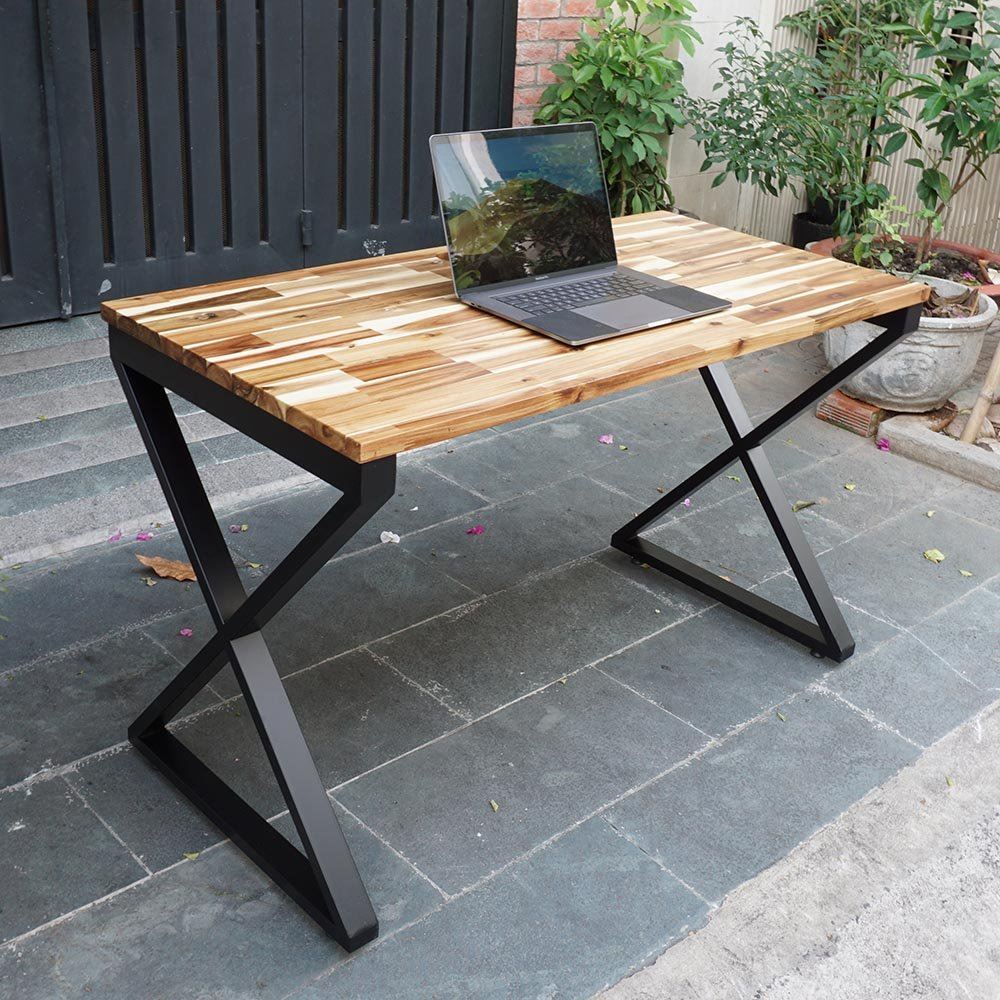 Bàn làm việc gỗ tràm chân sắt lắp ráp kích thước tiêu chuẩn 120x60cm
