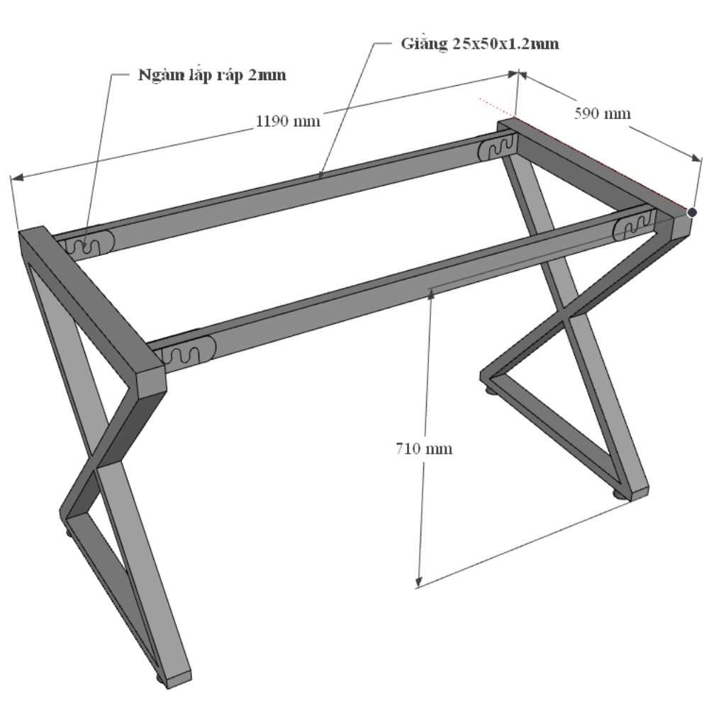 Chân bàn sắt cơ cấu lắp ráp ngàm tiện lợi, dễ dàng tháo lắp di dời