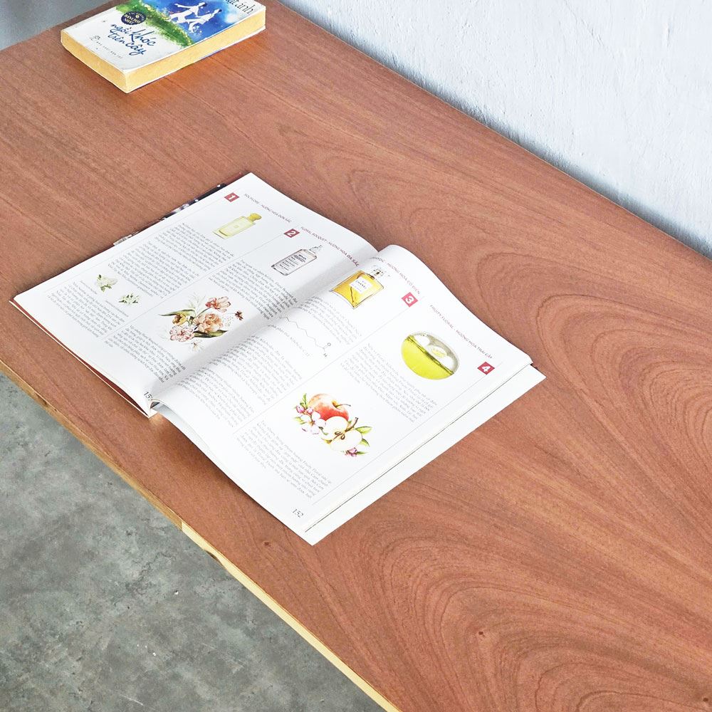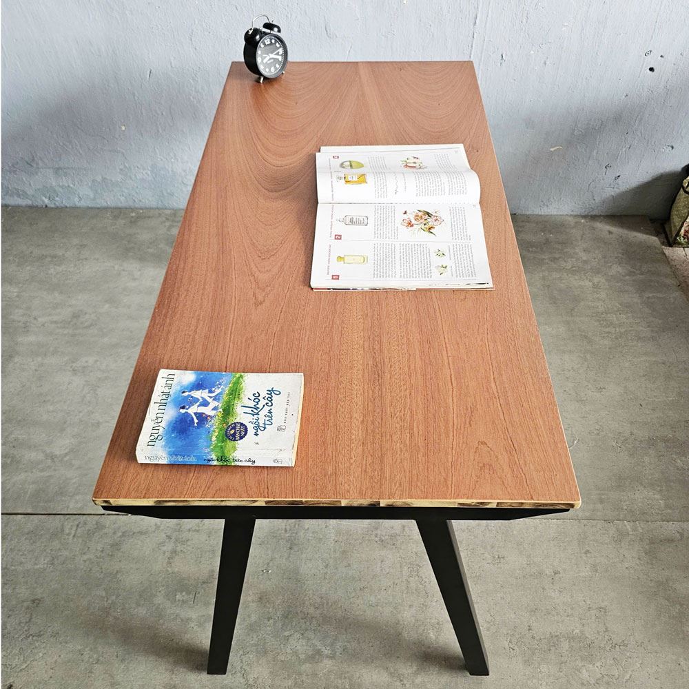 Mặt bàn được bàn được làm bằng ván gỗ Otim phủ veneer gỗ xoan, hay còn được biết đến với tên gọi ván Block Broad, là một sản phẩm được sản xuất từ những thanh gỗ nguyên tấm, qua quy trình xử lý nghiêm ngặt, ván ô tim ra đời với cấu trúc gồm phần lõi tấm gỗ ghép chắc chắn và lớp veneer gỗ xoan phủ bên ngoài. Veneer gỗ xoan này không chỉ tôn lên vẻ đẹp vân gỗ tự nhiên mà còn góp phần tăng cường độ bền, chống trầy xước và chống ẩm cho sản phẩm.