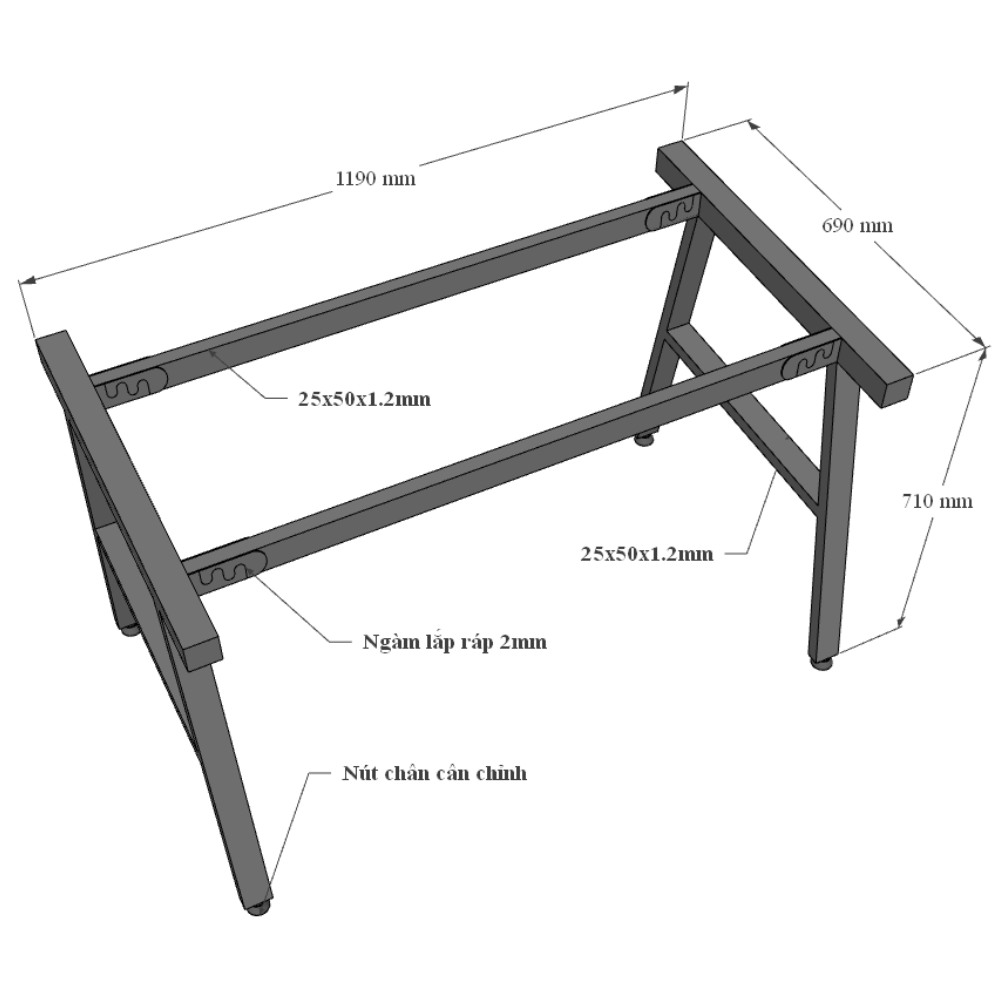 Chân bàn sắt cơ cấu lắp ráp phủ lớp sơn tĩnh điện cao cấp đảm bảo độ bền cao