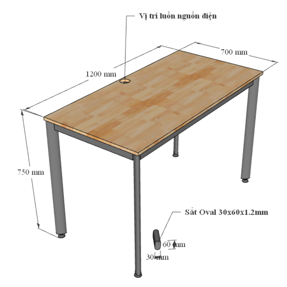 Bàn làm việc đơn giản chân sắt oval cơ cấu lắp ráp