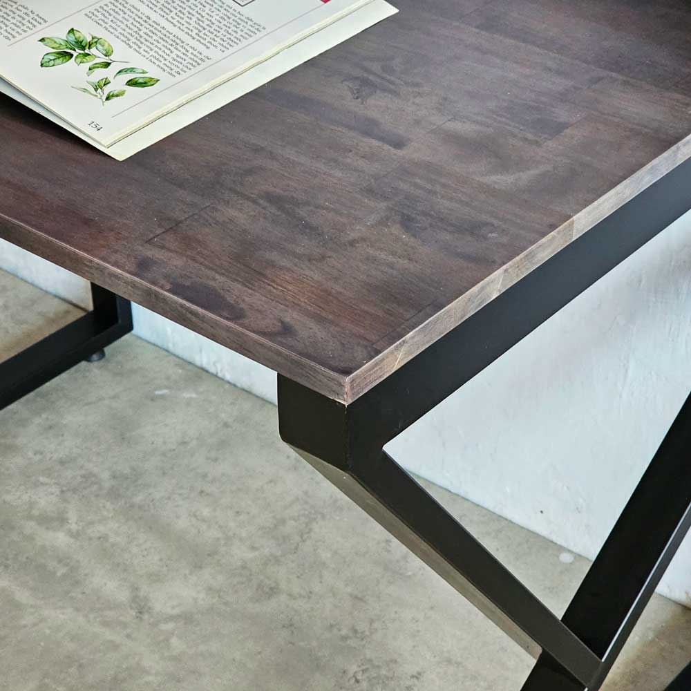 Với chất liệu được làm băng gỗ cao su AA, tiêu chuẩn xuất khẩu, được xử lý chàm nhám kỹ lưỡng, bề mặt xử lý chống thấm nước, giúp tăng độ bền và đảm bảo tính thẩm mỹ cao. Vân gỗ cao su AA không chỉ mang đến vẻ đẹp sang trọng, ấm áp mà còn đảm bảo độ bền chắc theo thời gian. Khung sắt của bàn làm việc được làm từ chất liệu sắt dày dặn, sơn tĩnh điện chống gỉ sét và trầy xước. Nhờ đó, bàn có khả năng chịu lực tốt, đảm bảo an toàn cho người sử dụng.