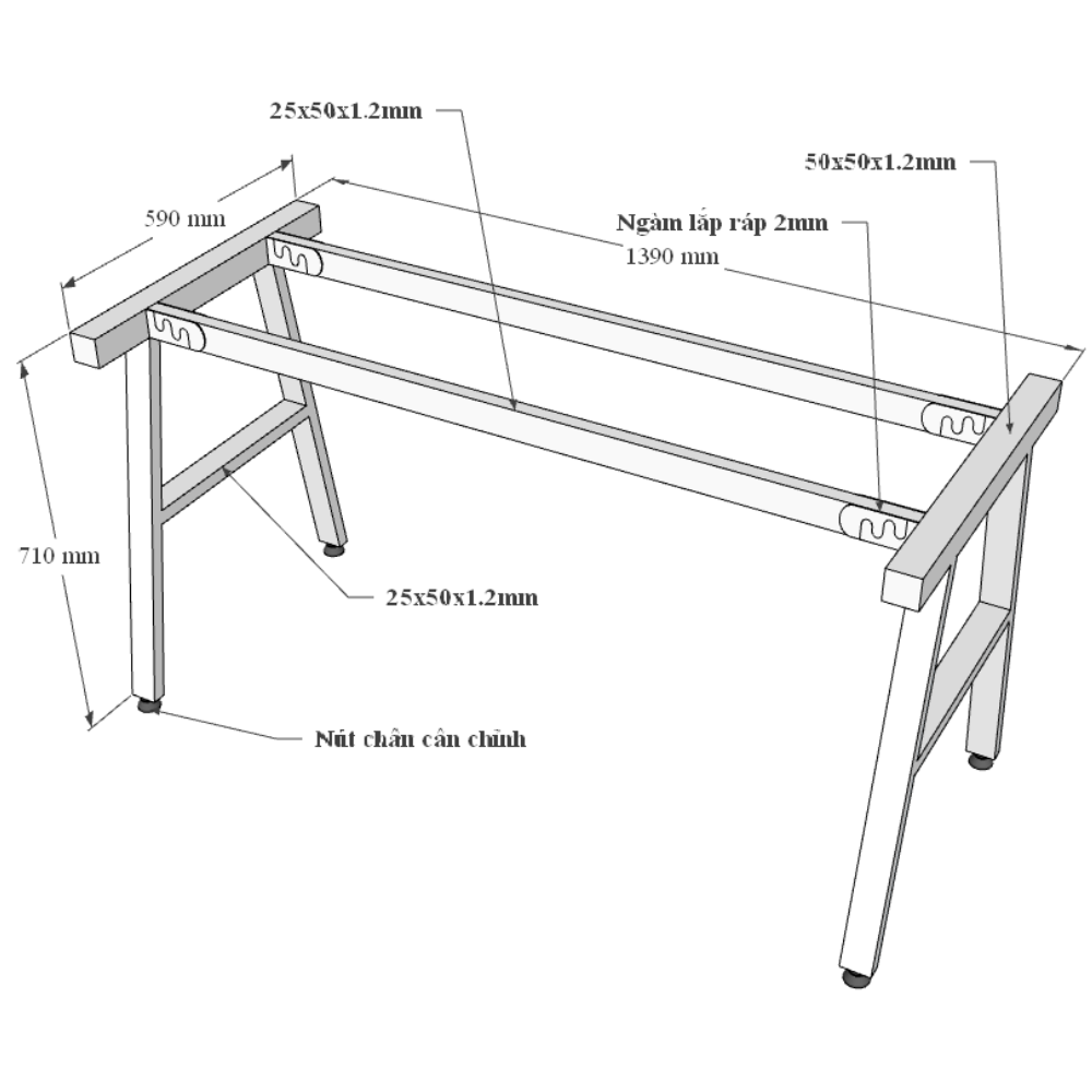 Chân bàn sắt cơ cấu lắp ráp phủ lớp sơn tĩnh điện cao cấp đảm bảo độ bền cao