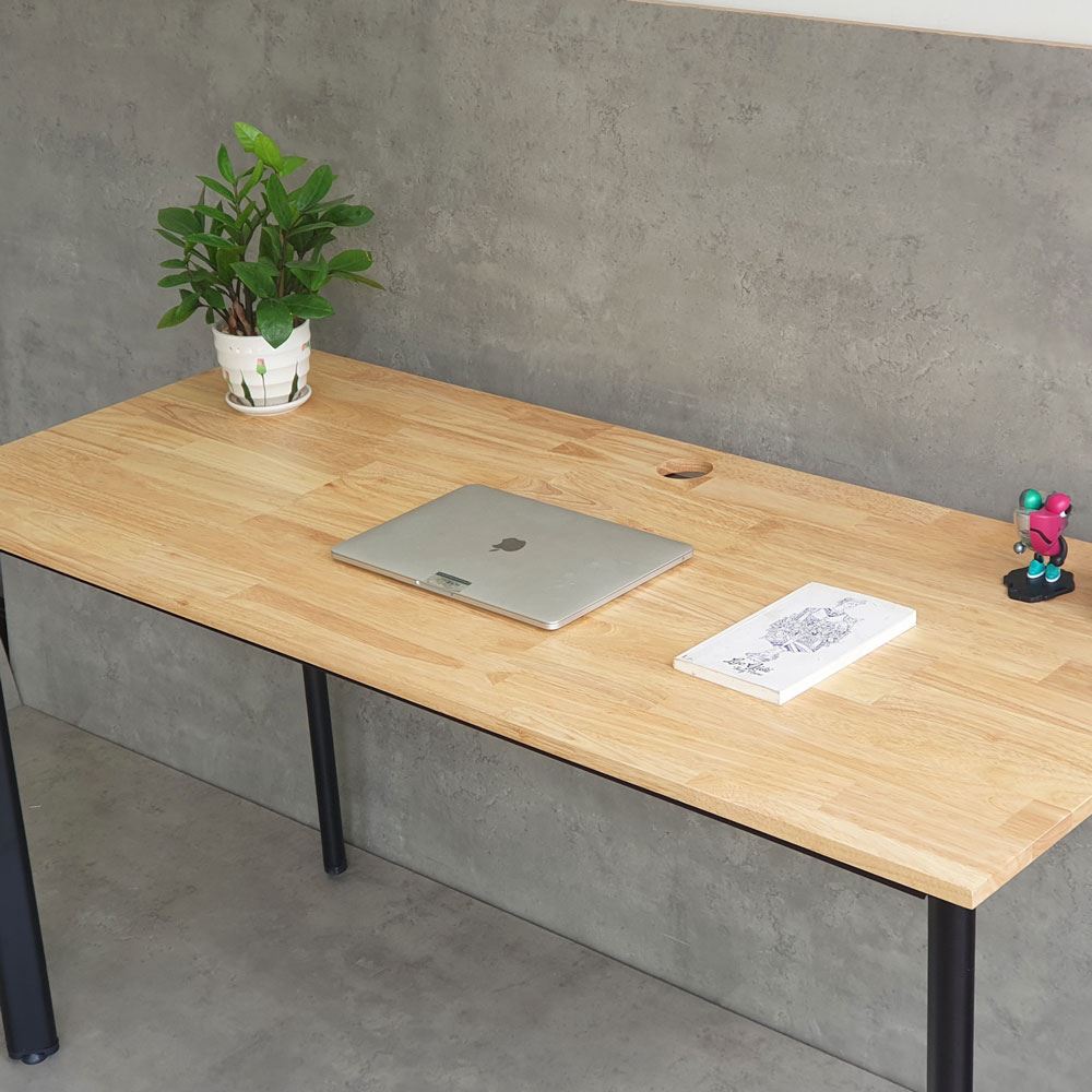 Bàn làm việc đơn giản gỗ cao su chân sắt lắp ráp