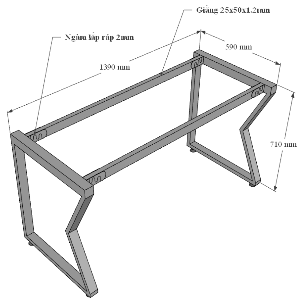 Chân bàn sắt lắp ráp sơn tĩnh điện cao cấp đảm bảo độ bền cao