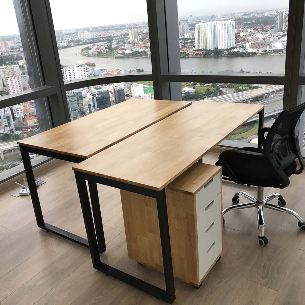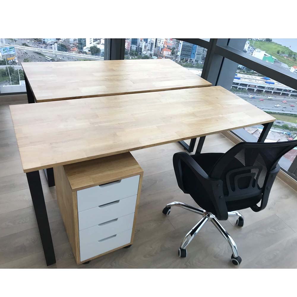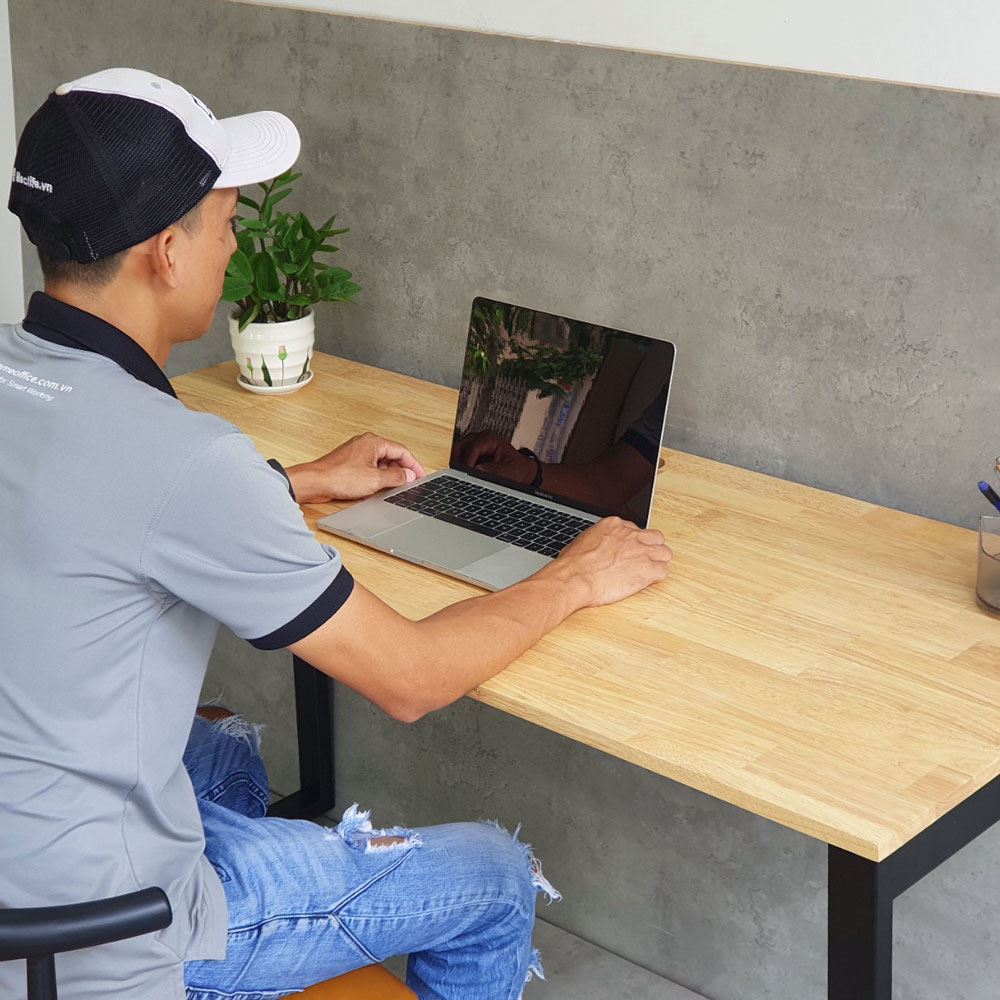Bàn làm việc HBRT003 Rectang Concept chân sắt chữ nhật 25x50. Bàn văn phòng gỗ cao su ghép tiêu chuẩn AA dày 17mm PU màu gỗ tự nhiên luôn có một vẻ đẹp riêng, thân thiện với môi trường, đối với các văn phòng mở, văn phòng kết hợp với cây xanh thì việc sử dụng bàn gỗ cao su chân sắt kết hợp trở nên hoàn hảo. Chất liệu gỗ cao su tại HomeOffice là gỗ ghép dày 17mm tiêu chuẩn AA ( 2 mặt đẹp) được xử lý qua 4 công đoạn trước khi PU hoàn thiện cho bề mặt sản phẩm rất đẹp mắt, chống nước tuyệt đối. Khung chân sắt sơn tĩnh điện với cơ cấu ngàm lắp ráp dễ dàng.