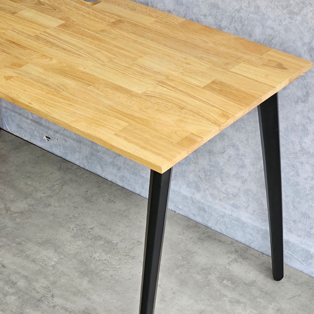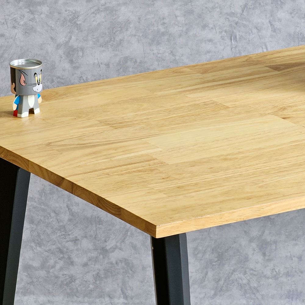 Với mặt bàn được làm bằng gỗ cao su AA dày 17mm, tiêu chuẩn xuất khẩu, có màu gỗ tự nhiên đẹp không có mấu mắt. Bề mặt gỗ được xử lý qua 4 công đoạn trước khi PU hoàn thiện cho bề mặt sản phẩm rất đẹp mắt, chống nước tuyệt đối. Hệ khung chân sắt sử dụng loại sắt dày dặn, giúp cho bàn luôn đảm bảo độ cứng cáp, ổn định và khả năng chịu lực tốt. Bề mặt khung chân sắt được phủ một lớp sơn tĩnh điện bảo vệ giúp chống ăn mòn, tăng tuổi thọ sản phẩm và đồng thời đảm bảo tính thẩm mỹ cao.