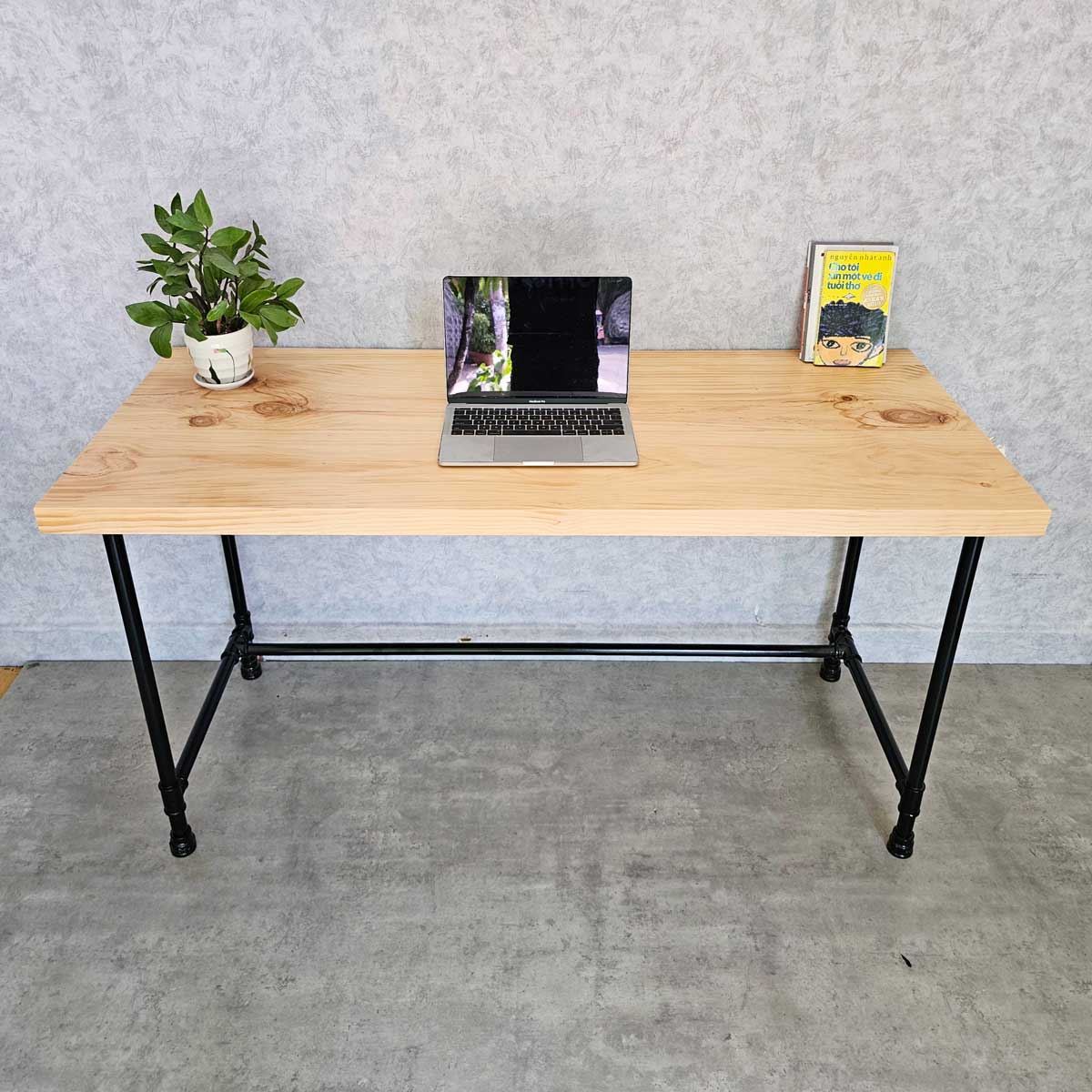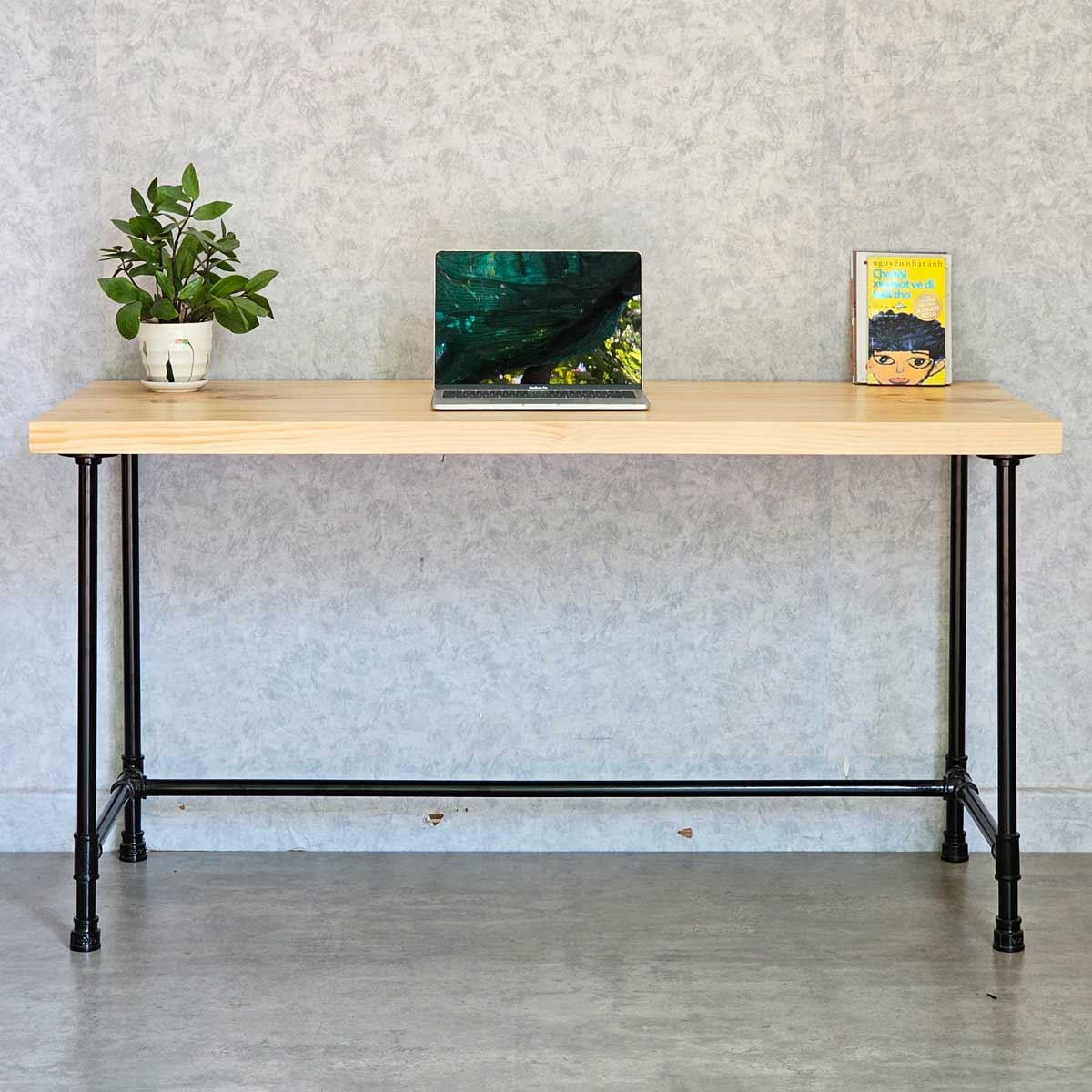 Chân bàn được làm từ ống nước sắt tiện ren và co gang, mặt bích gang, sơn tĩnh điện đen hoặc trắng, tạo nên vẻ đẹp chắc chắn và sang trọng. Bàn có kích thước 140x60x75cm, phù hợp với mọi nhu cầu sử dụng, giúp bạn thoải mái đặt máy tính, tài liệu, đồ dùng cá nhân. Chân bàn được thiết kế chắc chắn, giúp bàn luôn ổn định và vững trãi. Với thiết kế hiện đại, tinh tế, bàn làm việc gỗ thông chân ống nước sắt là một lựa chọn tuyệt vời cho những ai đang tìm kiếm một sản phẩm nội thất mộc mạc, hiện đại, vừa đẹp mắt, vừa tiện dụng. Bàn phù hợp với mọi không gian làm việc, từ văn phòng, nhà ở đến quán cà phê, studio sáng tạo.