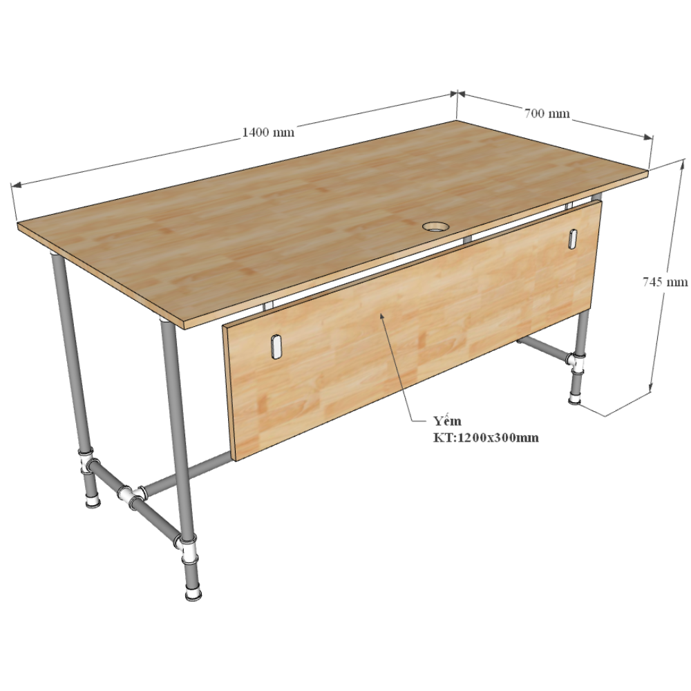 Bàn làm việc HBON005 Pipe Concept sử dụng chân sắt ống nước độc đáo. Bàn văn phòng gỗ cao su ghép tiêu chuẩn AA dày 17mm PU màu gỗ tự nhiên luôn có một vẻ đẹp riêng, thân thiện với môi trường, đối với các văn phòng mở, văn phòng kết hợp với cây xanh thì việc sử dụng bàn gỗ cao su chân sắt kết hợp trở nên hoàn hảo. Chất liệu gỗ cao su tại HomeOffice là gỗ ghép dày 17mm tiêu chuẩn AA ( 2 mặt đẹp) được xử lý qua 4 công đoạn trước khi PU hoàn thiện cho bề mặt sản phẩm rất đẹp mắt, chống nước tuyệt đối.Khung chân sắt sơn tĩnh điện cao cấp chống rỉ sét