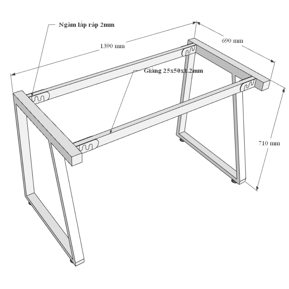 Chân sắt lắp ráp hệ trapez II kích thước 70x140cm