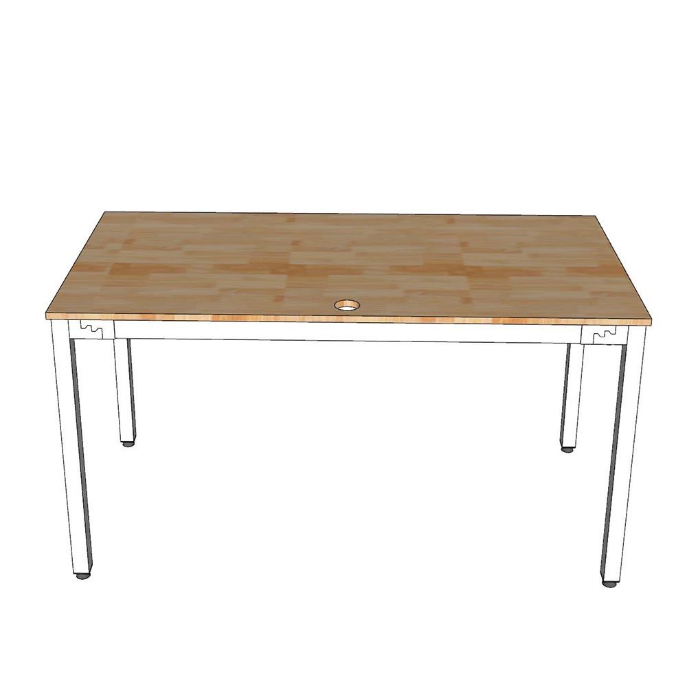 - Bước 2 : Căn vị trí mặt bàn đều các mép và sử dụng vít bắt gỗ liên kết mặt bàn với khung chân