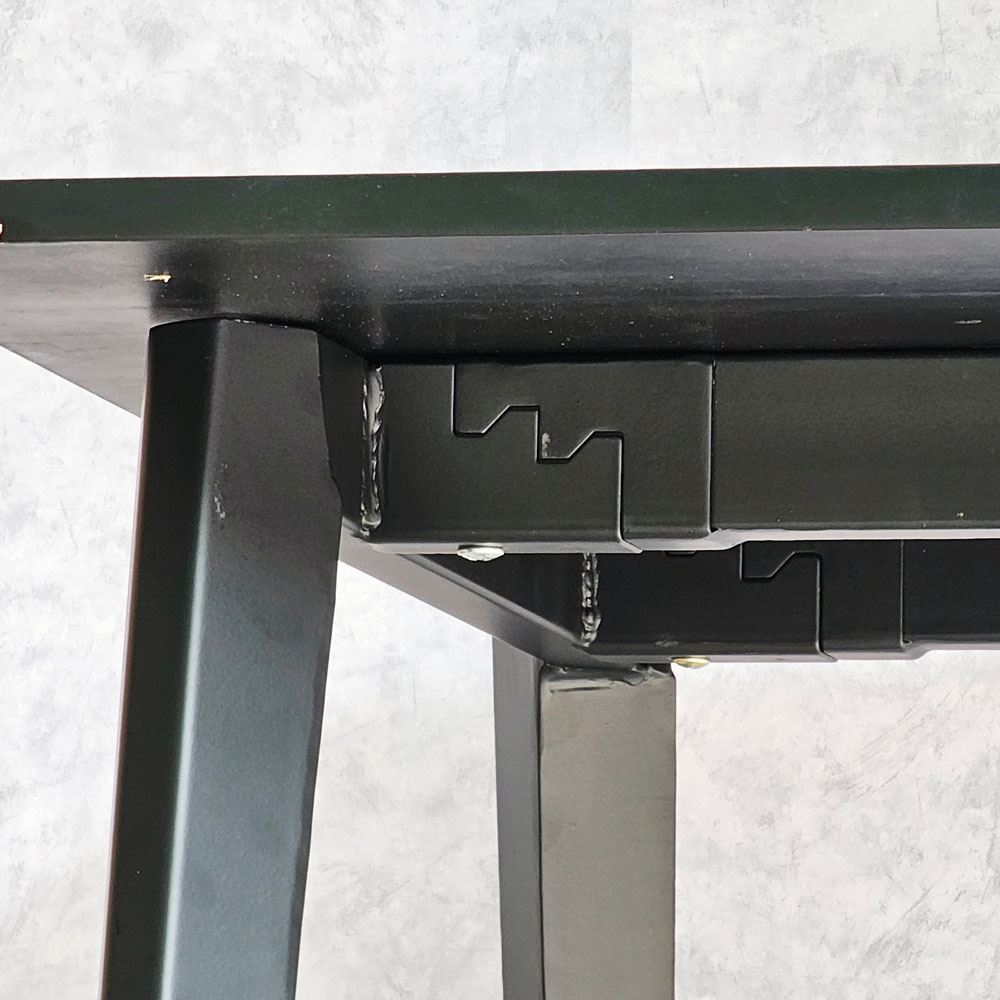 Với mặt bàn được làm bằng gỗ cao su AA dày 17mm, tiêu chuẩn xuất khẩu, có màu gỗ tự nhiên đẹp không có mấu mắt. Bề mặt gỗ được xử lý qua 4 công đoạn trước khi PU hoàn thiện cho bề mặt sản phẩm rất đẹp mắt, chống nước tuyệt đối. Hệ khung chân sắt sử dụng loại sắt dày dặn, giúp cho bàn luôn đảm bảo độ cứng cáp, ổn định và khả năng chịu lực tốt. Bề mặt khung chân sắt được phủ một lớp sơn tĩnh điện bảo vệ giúp chống ăn mòn, tăng tuổi thọ sản phẩm và đồng thời đảm bảo tính thẩm mỹ cao.