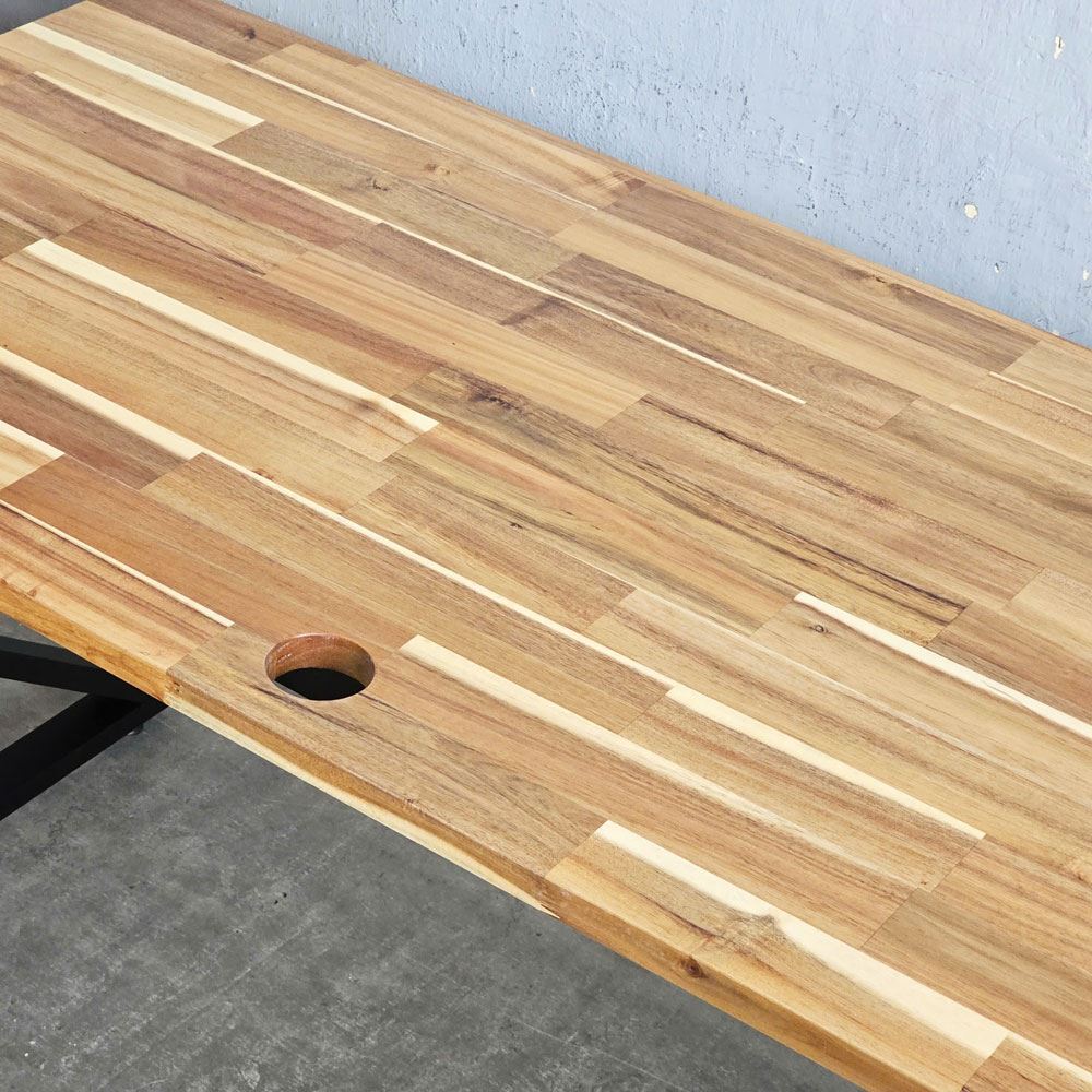 Bàn làm việc HBKC048 là sự kết hợp hoàn hảo giữa vẻ đẹp tự nhiên của gỗ và đường nét khiện đại của kim loại. Mặt bàn gỗ tràm AA, với vân gỗ độc đáo đã được xử lý chà nhám và phủ chống thấm, không chỉ mang đến một không gian làm việc sang trọng mà còn đảm bảo độ bền bỉ theo thời gian. Khung chân bàn chữ K chắc chắn, được làm từ sắt hộp 25x50mm dày 1.2mm, tạo nên một cấu trúc vững chãi, chịu lực tốt, phù hợp với những người thường xuyên làm việc với máy tính hoặc các thiết bị văn phòng.