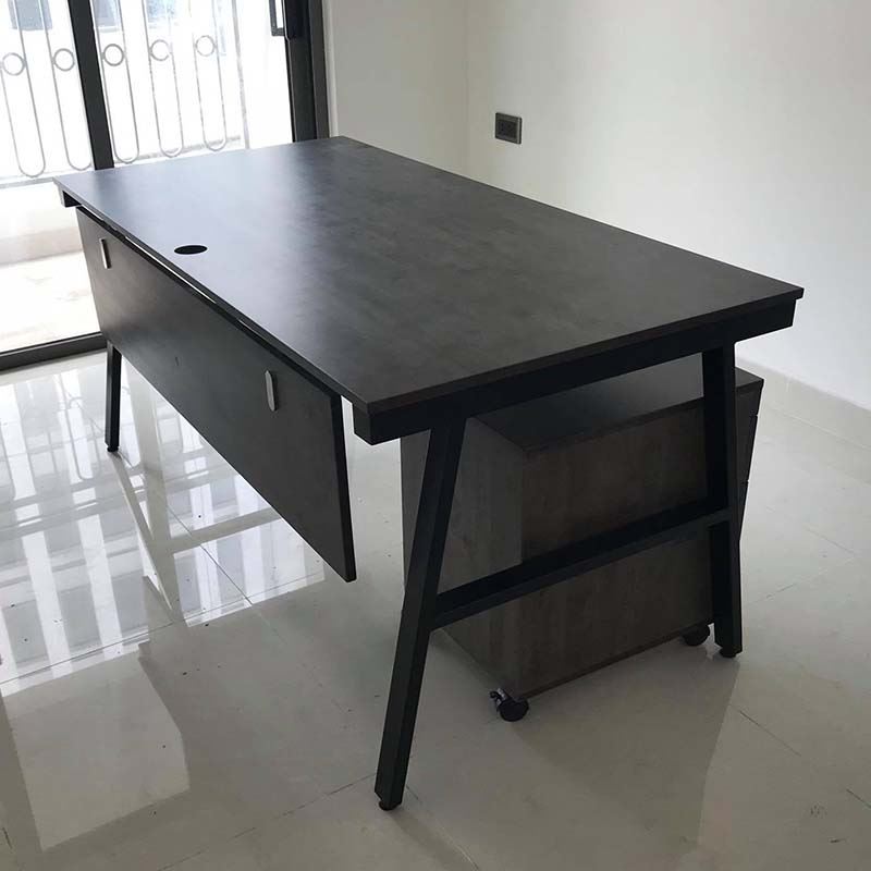 Bàn làm việc HBAC007 AConcept chân sắt chữ nhật 25x50. Bàn văn phòng gỗ cao su ghép tiêu chuẩn AA dày 17mm PU màu gỗ tự nhiên luôn có một vẻ đẹp riêng, thân thiện với môi trường, đối với các văn phòng mở, văn phòng kết hợp với cây xanh thì việc sử dụng bàn gỗ cao su chân sắt kết hợp trở nên hoàn hảo. Chất liệu gỗ cao su tại HomeOffice là gỗ ghép dày 17mm tiêu chuẩn AA ( 2 mặt đẹp) được xử lý qua 4 công đoạn trước khi PU hoàn thiện cho bề mặt sản phẩm rất đẹp mắt, chống nước tuyệt đối. Khung chân sắt sơn tĩnh điện với cơ cấu ngàm lắp ráp dễ dàng.