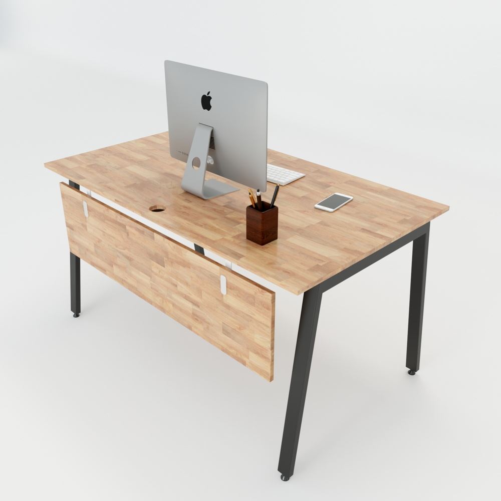 Bàn làm việc HBAT006 Aton Concept chân sắt chữ nhật 25x50. Bàn văn phòng gỗ cao su ghép tiêu chuẩn AA dày 17mm PU màu gỗ tự nhiên luôn có một vẻ đẹp riêng, thân thiện với môi trường, đối với các văn phòng mở, văn phòng kết hợp với cây xanh thì việc sử dụng bàn gỗ cao su chân sắt kết hợp trở nên hoàn hảo. Chất liệu gỗ cao su tại Home Office là gỗ ghép dày 17mm tiêu chuẩn AA ( 2 mặt đẹp) được xử lý qua 4 công đoạn trước khi PU hoàn thiện cho bề mặt sản phẩm rất đẹp mắt, chống nước tuyệt đối. Khung chân sắt sơn tĩnh điện với cơ cấu ngàm lắp ráp dễ dàng.