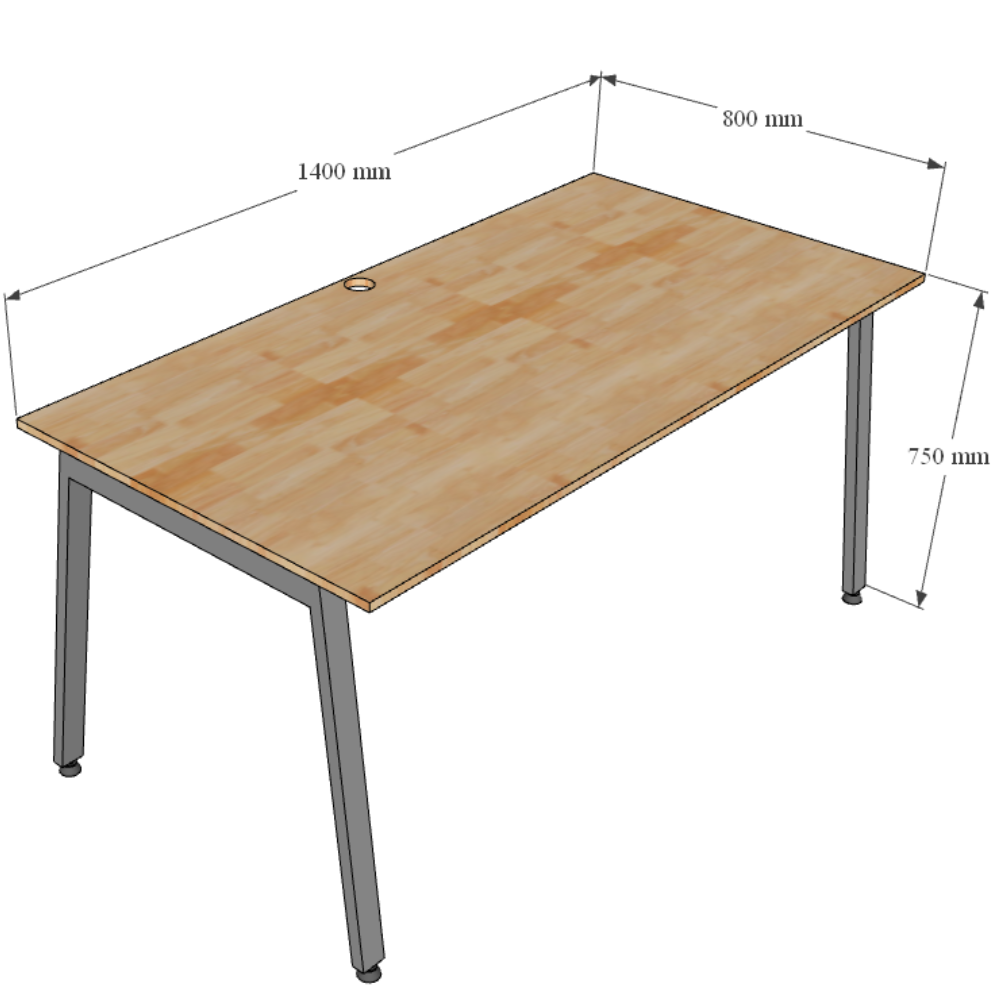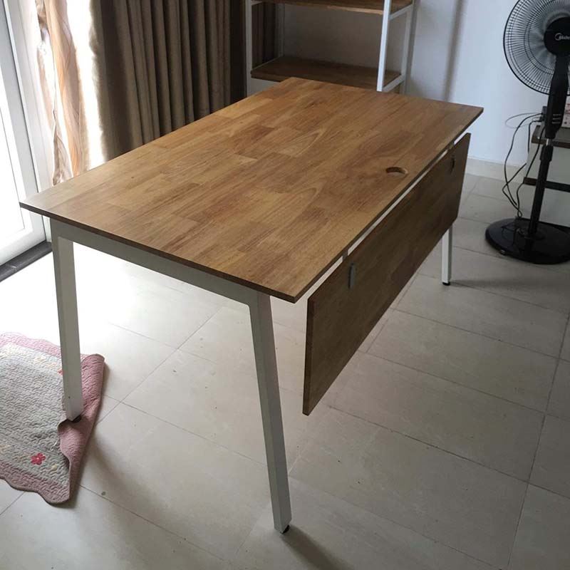 Bàn làm việc gỗ cao su chân sắt lắp ráp kích thước 140x80x75cm