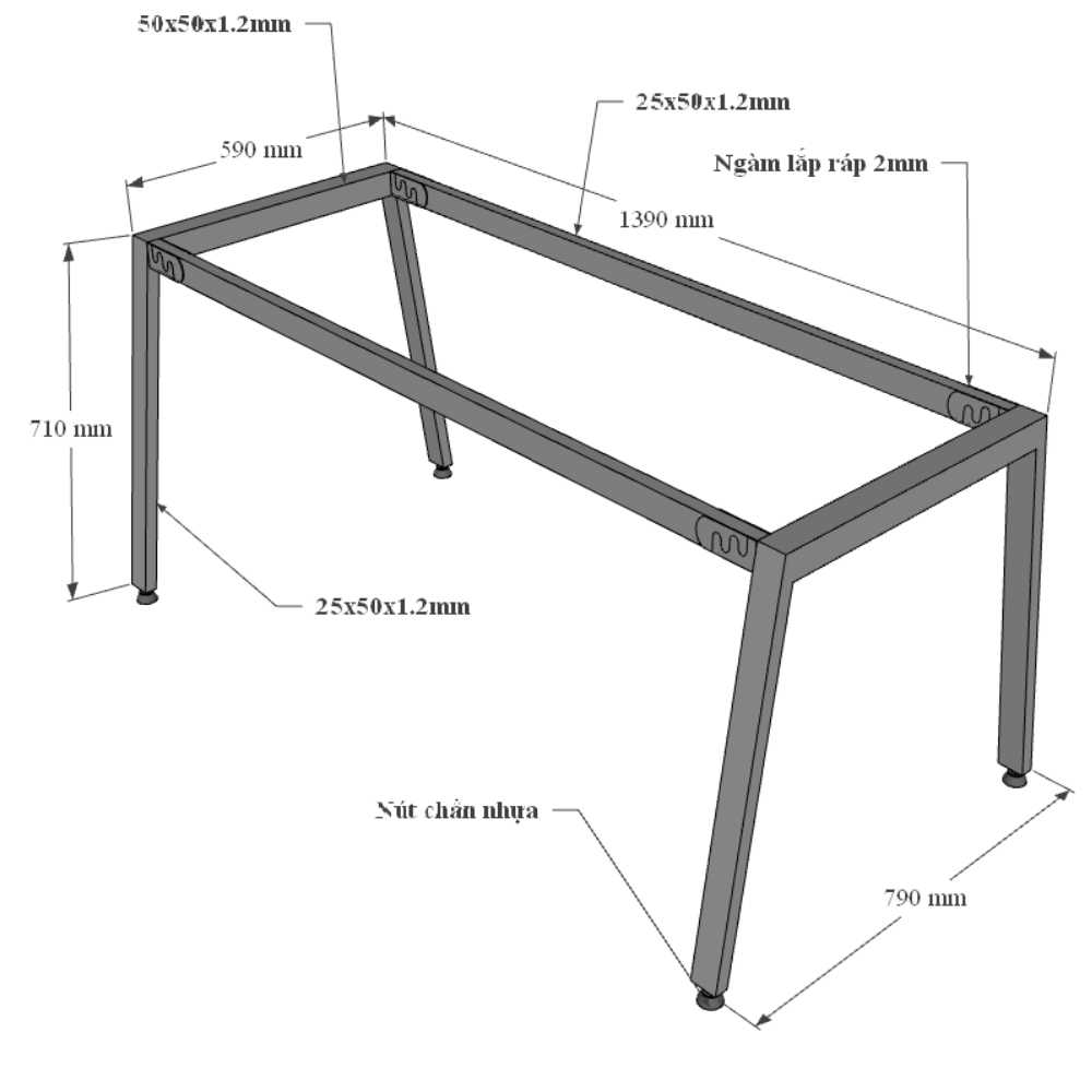 Chân bàn sắt cơ cấu lắp ráp ngàm sơn tĩnh điện cao cấp