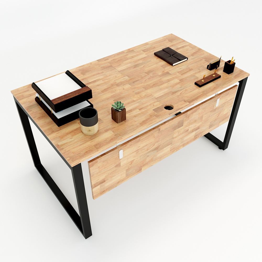 Bàn làm việc HBRT006 Rectang Concept chân sắt thiết kế hình chữ nhật với mặt bàn gỗ cao su ghép tiêu chuẩn AA dày 17mm PU màu gỗ tự nhiên luôn có một vẻ đẹp riêng, thân thiện với môi trường, đối với các văn phòng mở, văn phòng kết hợp với cây xanh thì việc sử dụng bàn gỗ cao su chân sắt kết hợp trở nên hoàn hảo. Chất liệu gỗ cao su tại HomeOffice là gỗ ghép dày 17mm tiêu chuẩn AA ( 2 mặt đẹp) được xử lý qua 4 công đoạn trước khi PU hoàn thiện cho bề mặt sản phẩm rất đẹp mắt, chống nước tuyệt đối. Khung chân sắt sơn tĩnh điện với cơ cấu ngàm lắp ráp dễ dàng. Bàn với kích thước 80x140cm khá rộng rãi dành cho các vị lãnh đạo hay làm việc tại nhà, bàn có tấm che chân treo với phụ kiện treo cao cấp rất đẹp mắt.