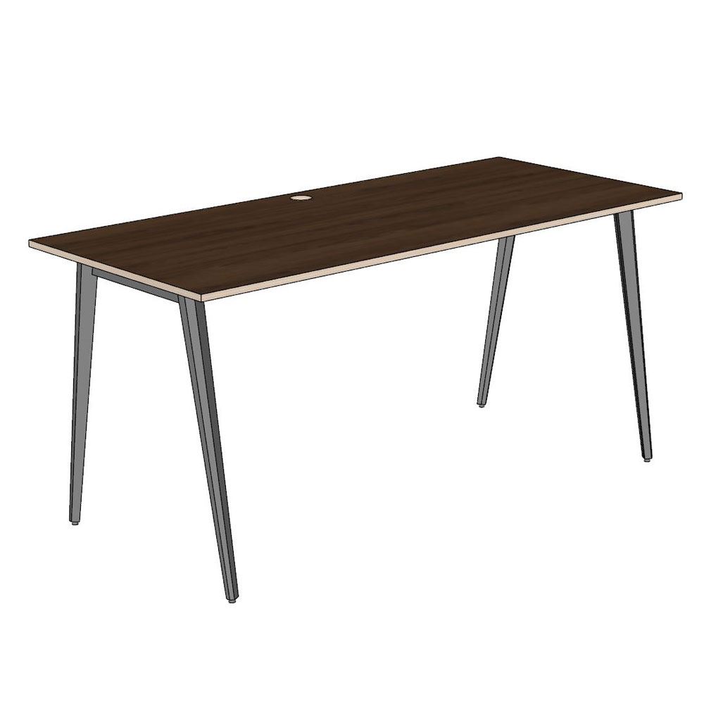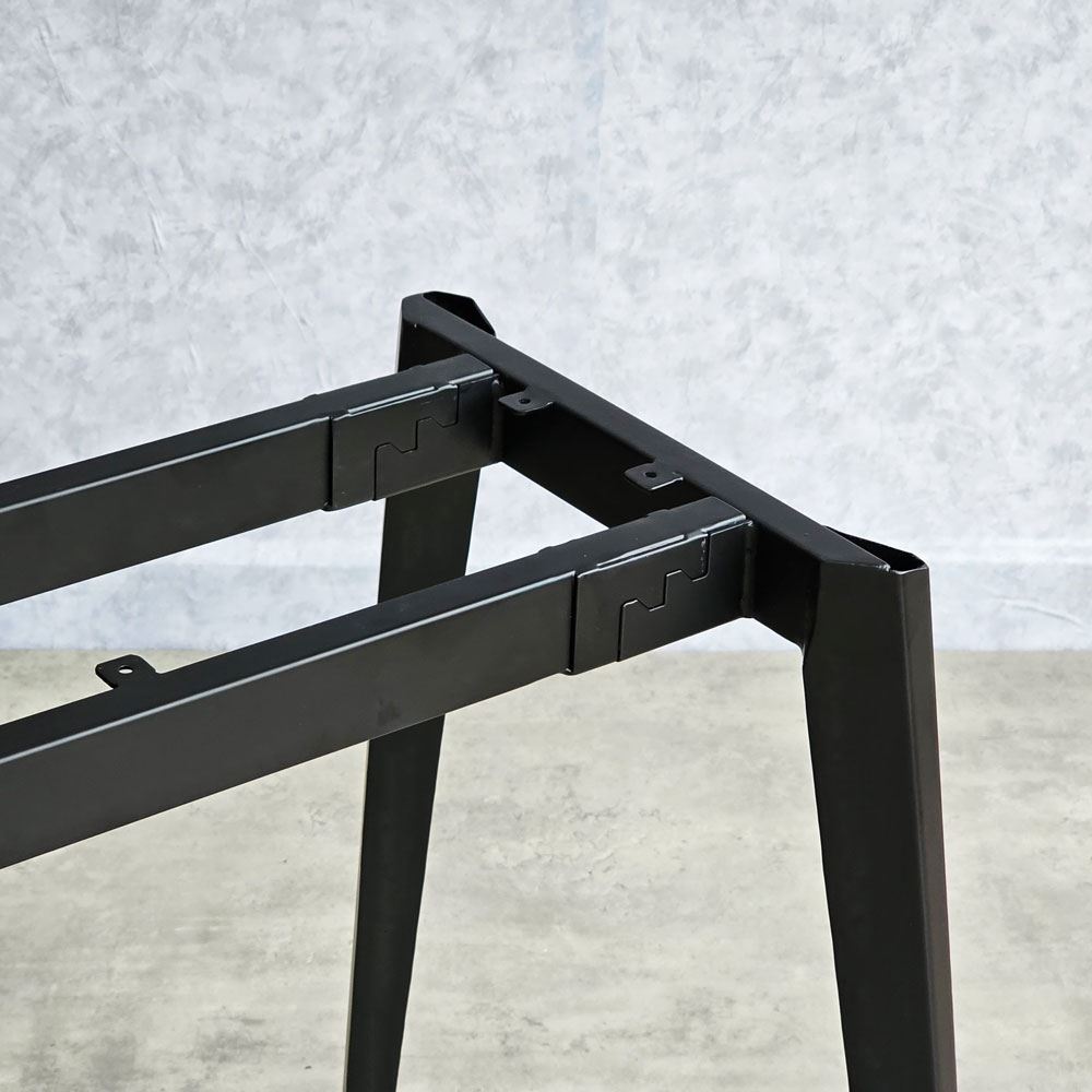 Với mặt bàn được làm bằng gỗ plywood, có cấu trúc từ những tấm ván ép lại với nhau tạo ra một cấu trúc khá vững chắc. Sự xen kẽ giữa các lớp gỗ và việc sử dụng keo chịu nước để liên kết chúng làm tăng tính cứng của vật liệu. Điều này cho phép gỗ plywood chịu được sức ép và trọng lượng lớn hơn so với gỗ thông thường mà không bị cong vênh hay biến dạng nhiều. Hệ khung chân sắt sử dụng loại sắt dày dặn, giúp cho bàn luôn đảm bảo độ cứng cáp, ổn định và khả năng chịu lực tốt. Bề mặt khung chân sắt được phủ một lớp sơn tĩnh điện bảo vệ giúp chống ăn mòn, tăng tuổi thọ sản phẩm và đồng thời đảm bảo tính thẩm mỹ cao.