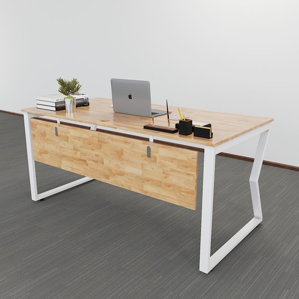 Bàn làm việc HBMC007 MConcept chân sắt chữ nhật 25x50. Bàn văn phòng gỗ cao su ghép tiêu chuẩn AA dày 17mm PU màu gỗ tự nhiên luôn có một vẻ đẹp riêng, thân thiện với môi trường, đối với các văn phòng mở, văn phòng kết hợp với cây xanh thì việc sử dụng bàn gỗ cao su chân sắt kết hợp trở nên hoàn hảo. Chất liệu gỗ cao su tại HomeOffice là gỗ ghép dày 17mm tiêu chuẩn AA ( 2 mặt đẹp) được xử lý qua 4 công đoạn trước khi PU hoàn thiện cho bề mặt sản phẩm rất đẹp mắt, chống nước tuyệt đối. Khung chân sắt sơn tĩnh điện với cơ cấu ngàm lắp ráp dễ dàng.